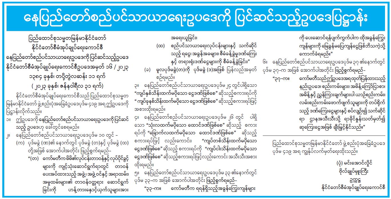 နေပြည်တော်စည်ပင်သာယာရေးဥပဒေကို ပြင်ဆင်သည့်ဥပဒေပြဋ္ဌာန်း