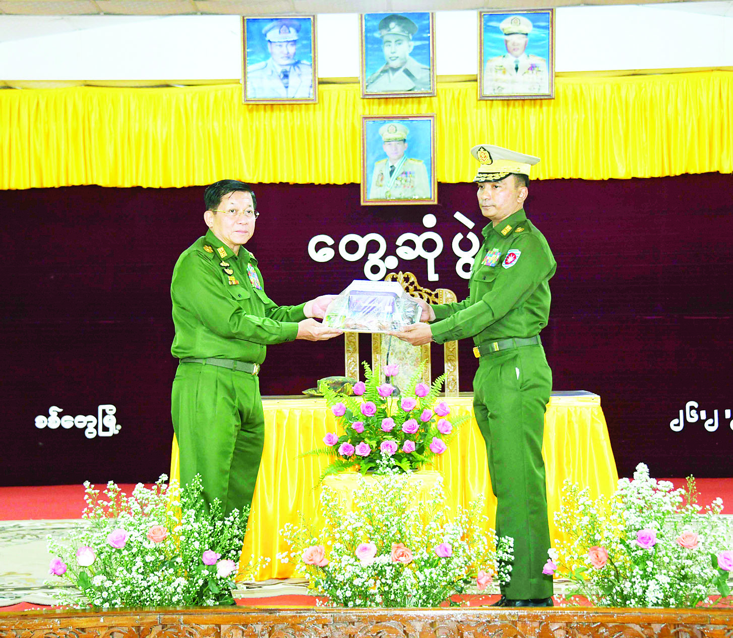 ယင်းနောက် နိုင်ငံတော်စီမံအုပ်ချုပ်ရေးကောင်စီဥက္ကဋ္ဌ တပ်မတော်ကာကွယ်ရေးဦးစီးချုပ်က အရာရှိ၊ စစ်သည်၊ မိသားစုများအတွက် စားသောက်ဖွယ်ရာပစ္စည်းများကိုပေးအပ်ရာ တိုင်းမှူးကလည်းကောင်း၊ နိုင်ငံတော်စီမံအုပ်ချုပ်ရေးကောင်စီဥက္ကဋ္ဌ တပ်မတော်ကာကွယ်ရေးဦးစီးချုပ်၏ဇနီးက တပ်နယ်မိခင်နှင့် ကလေးစောင့်ရှောက်ရေးအသင်းအတွက် ချီးမြှင့်ငွေများကိုပေးအပ်ရာ တိုင်းမှူး၏ ဇနီးကလည်းကောင်း အသီးသီးလက်ခံရယူကြသည်။
