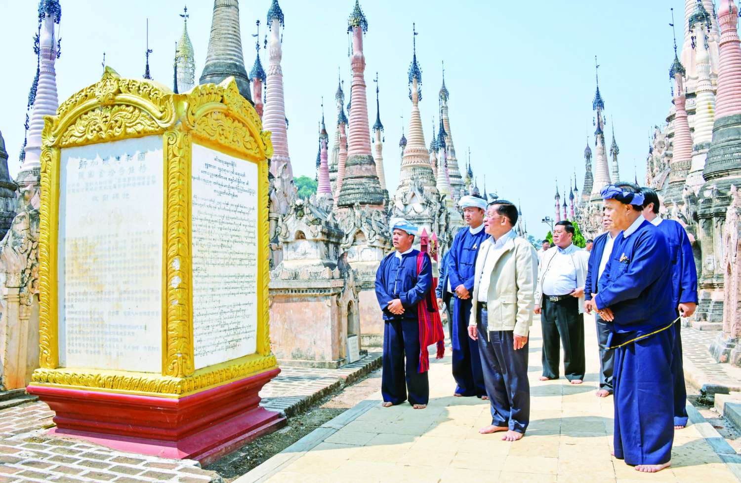 နိုင်ငံတော်စီမံအုပ်ချုပ်ရေးကောင်စီဥက္ကဋ္ဌ နိုင်ငံတော်ဝန်ကြီးချုပ် ဗိုလ်ချုပ်မှူးကြီး မင်းအောင်လှိုင် ရှေးဟောင်းသမိုင်းဝင် မွေတော်ကက္ကူစေတီတော်နှင့် တောင်ကြီးမြို့ ကျက်သရေဆောင် ရွှေဘုန်းပွင့်စေတီတော်မြတ်ကြီးအား သွားရောက်ဖူးမြော်ကြည်ညို
