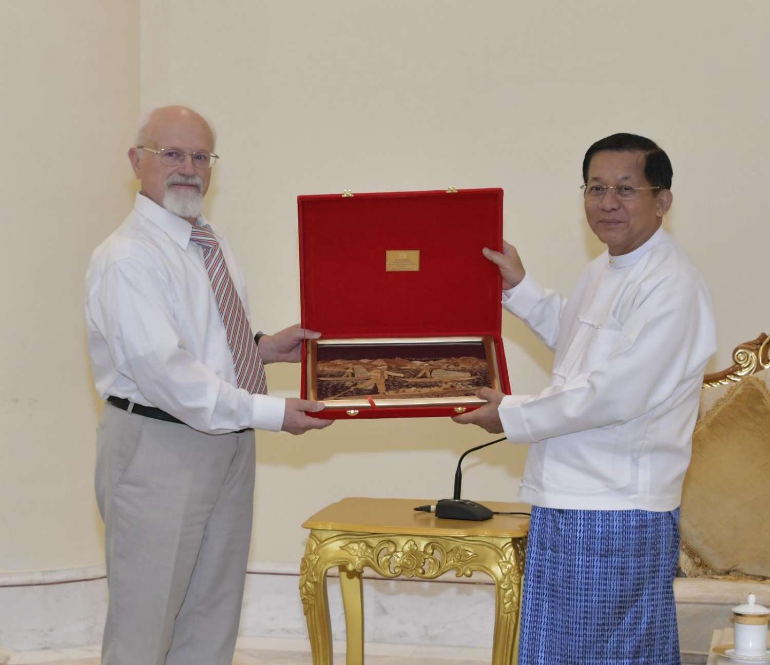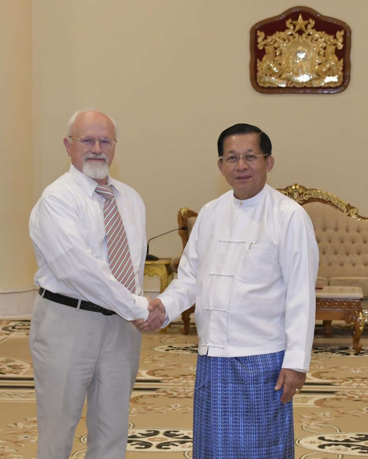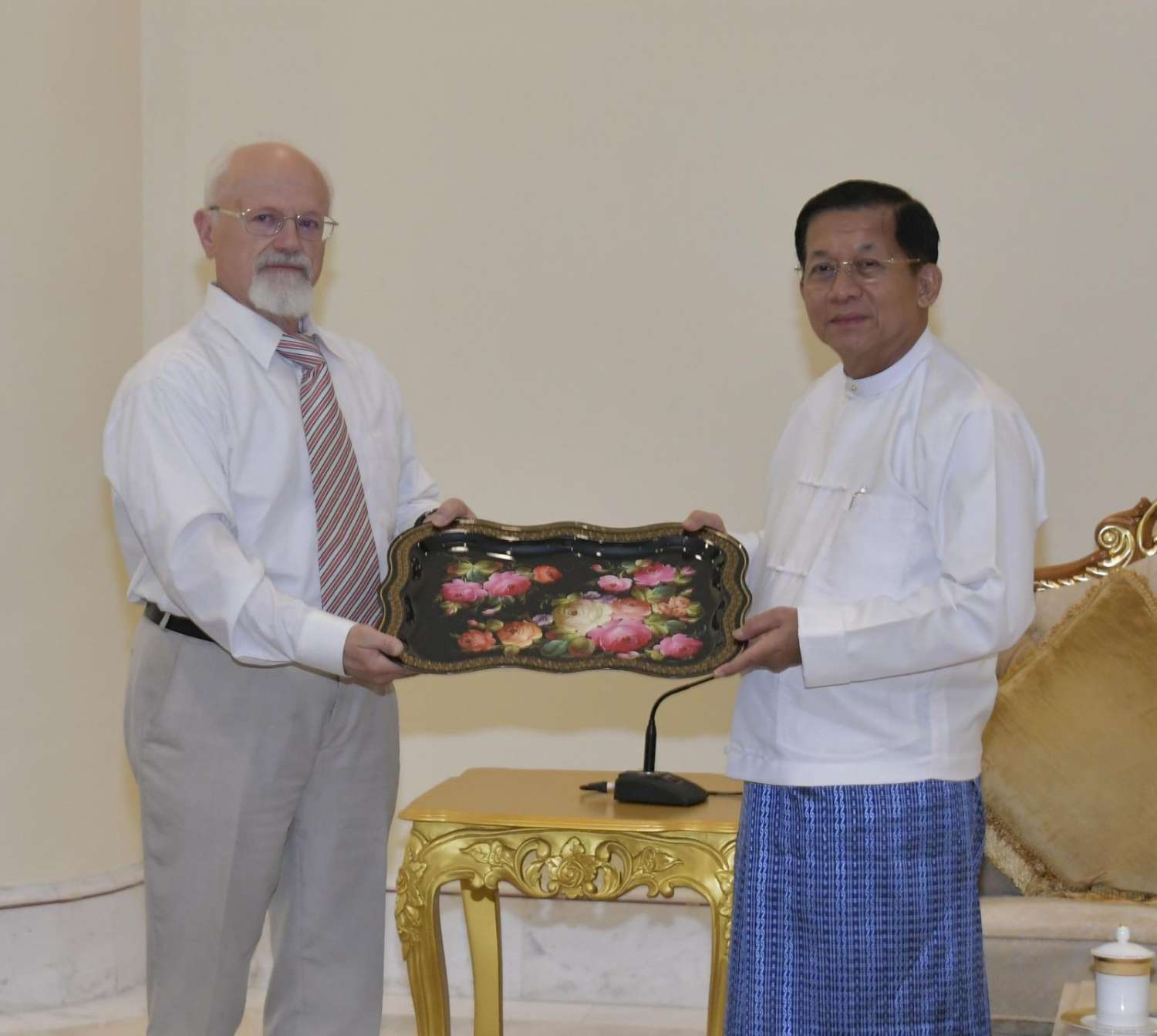 နိုင်ငံတော်စီမံအုပ်ချုပ်ရေးကောင်စီဥက္ကဋ္ဌ နိုင်ငံတော်ဝန်ကြီးချုပ် ဗိုလ်ချုပ်မှူးကြီးမင်းအောင်လှိုင်ထံ ရုရှား-မြန်မာ ချစ်ကြည်ရေးနှင့် ပူးပေါင်းဆောင်ရွက်ရေးအသင်း ဒုတိယဥက္ကဋ္ဌ Mr.Anatoly. Bulochnikov ဦးဆောင်သော ကိုယ်စားလှယ်အဖွဲ့က ယနေ့မွန်းလွဲပိုင်းတွင် နေပြည်တော်ရှိ နိုင်ငံတော်စီမံအုပ်ချုပ်ရေးကောင်စီဥက္ကဋ္ဌရုံး၊ ဧည့်ခန်းမ၌ လာရောက်ဂါရဝပြုတွေ့ဆုံသည်။