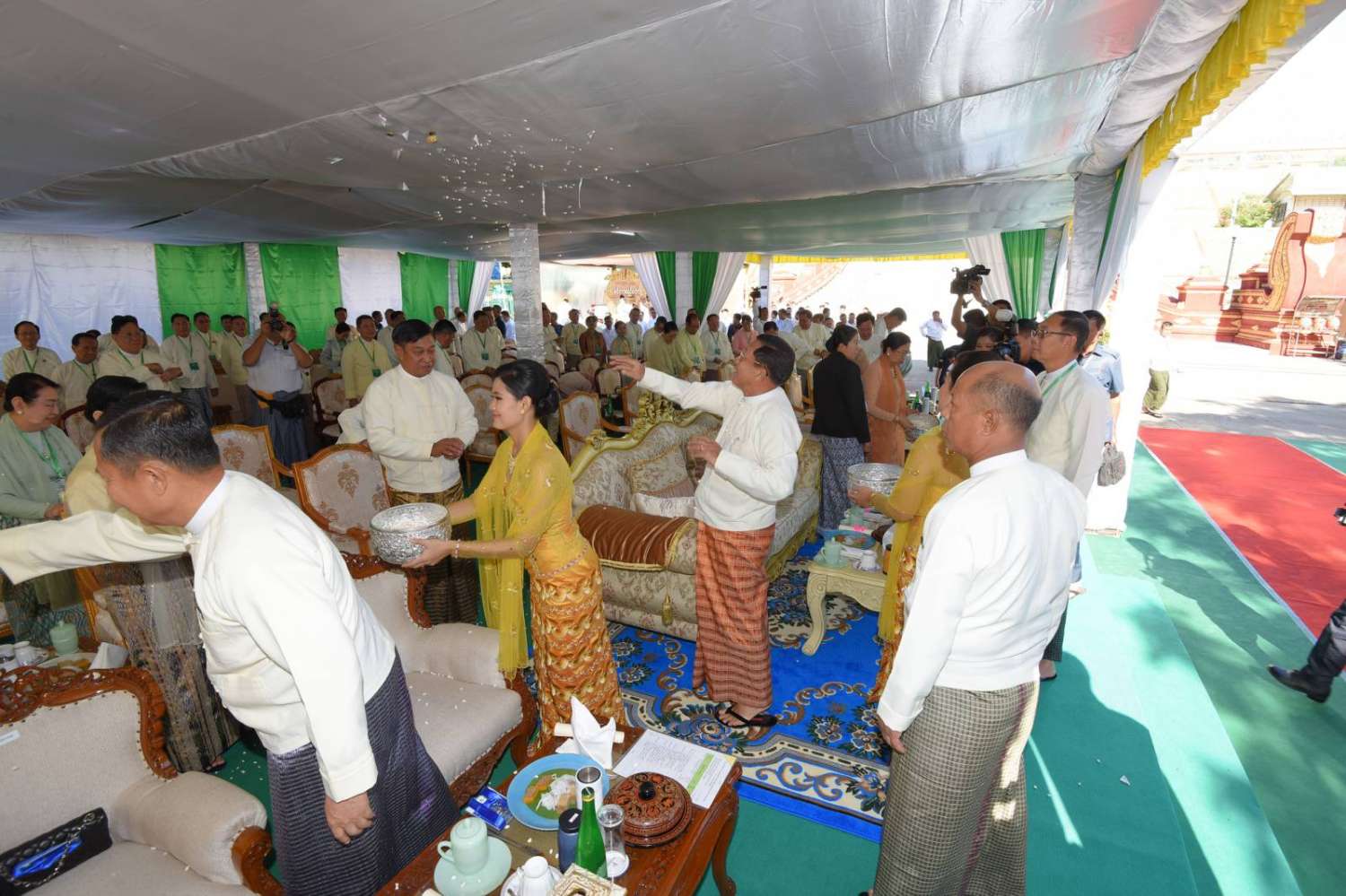 အခမ်းအနားသို့ နိုင်ငံတော်စီမံအုပ်ချုပ်ရေးကောင်စီဥက္ကဋ္ဌ နိုင်ငံတော်ဝန်ကြီးချုပ် ဗိုလ်ချုပ်မှူးကြီး မင်းအောင်လှိုင်နှင့်ဇနီး ဒေါ်ကြူကြူလှ၊ ကောင်စီဒုတိယဥက္ကဋ္ဌ ဒုတိယဝန်ကြီးချုပ် ဒုတိယဗိုလ်ချုပ်မှူးကြီး စိုးဝင်းနှင့်ဇနီး ဒေါ်သန်းသန်းနွယ်၊ ကောင်စီအတွင်းရေးမှူးနှင့်ဇနီး၊ တွဲဖက်အတွင်းရေးမှူးနှင့်ဇနီး၊ ကောင်စီဝင်များနှင့်ဇနီးများ၊ ညှိနှိုင်းကွပ်ကဲရေးမှူး (ကြည်း၊ ရေ၊ လေ)နှင့် ဇနီး၊ ပြည်ထောင်စုအဆင့်ပုဂ္ဂိုလ်များ၊ ပြည်ထောင်စုဝန်ကြီးများနှင့် ဇနီးများ၊ နေပြည်တော်ကောင်စီဥက္ကဋ္ဌ၊ တပ်မတော်အဆင့်မြင့်အရာရှိကြီးများနှင့်ဇနီးများ၊ နေပြည်တော်တိုင်းစစ်ဌာနချုပ် တိုင်းမှူးနှင့် တာဝန်ရှိသူများ တက်ရောက်ကြသည်။