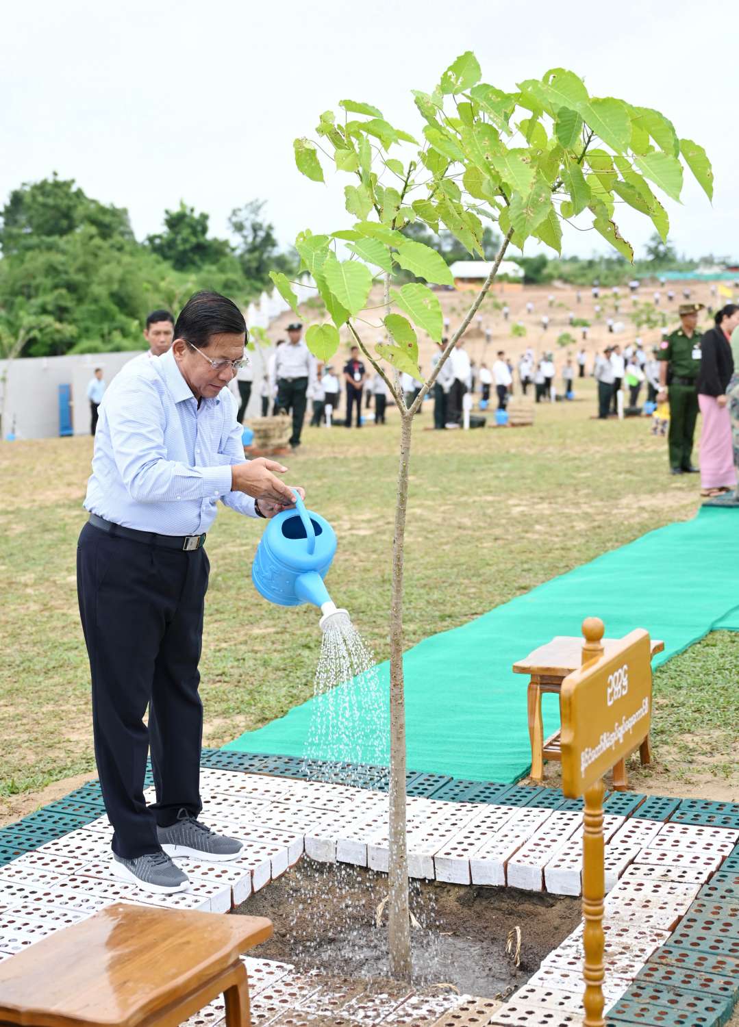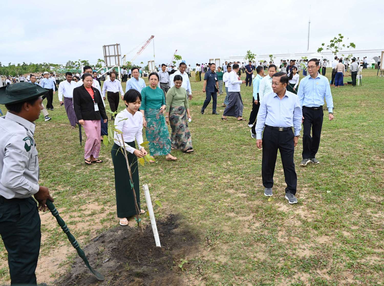ယင်းနောက် အခမ်းအနားသို့ တက်ရောက်လာကြသည့် နိုင်ငံတော်စီမံအုပ်ချုပ်ရေးကောင်စီ ဒုတိယဥက္ကဋ္ဌ ဒုတိယဝန်ကြီးချုပ်နှင့်ဇနီး၊ ကောင်စီအတွင်းရေးမှူးနှင့်ဇနီး၊ တွဲဖက်အတွင်းရေးမှူးနှင့်ဇနီး၊ ကောင်စီအဖွဲ့ဝင်များနှင့်ဇနီးများ၊ ပြည်ထောင်စုအဆင့် ပုဂ္ဂိုလ်များနှင့် ပြည်ထောင်စုဝန်ကြီးများ၊ ဝန်ကြီးဌာနများမှ ဌာနဆိုင်ရာ အရာထမ်း၊ အမှုထမ်းများ၊ သစ်တောနှင့်ပတ်ဝန်းကျင်ဆိုင်ရာ တက္ကသိုလ်နှင့် အခြေခံပညာကျောင်းများမှ ကျောင်းသား၊ ကျောင်းသူများ၊ တာဝန်ရှိသူများသည် ပျိုးပင်များကို တစ်ပြိုင်တည်း စိုက်ပျိုးပေးကြသည်။