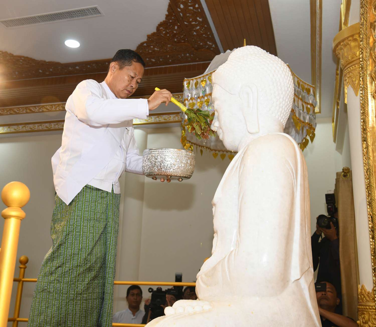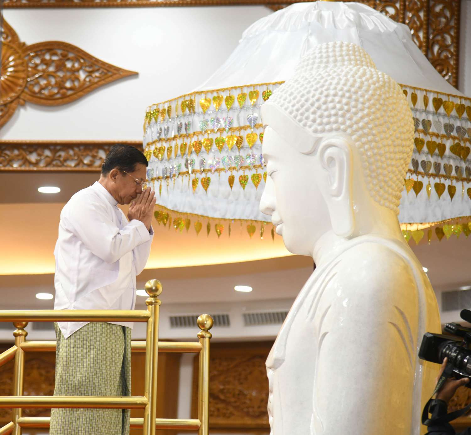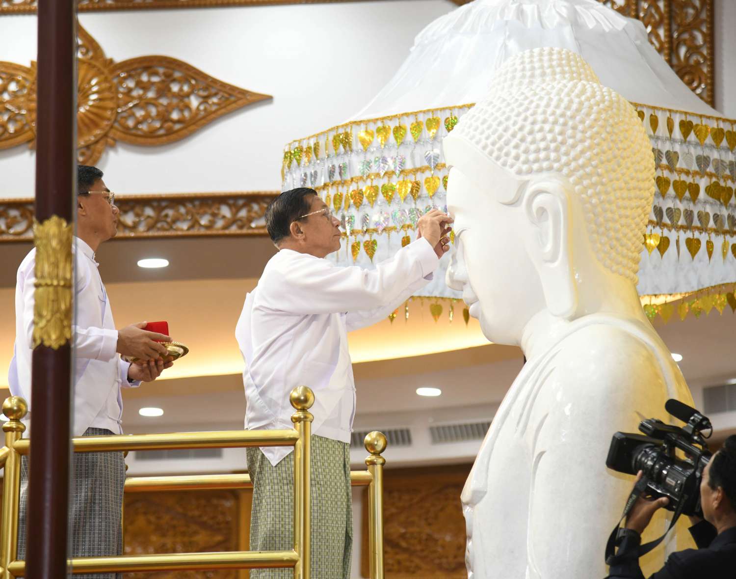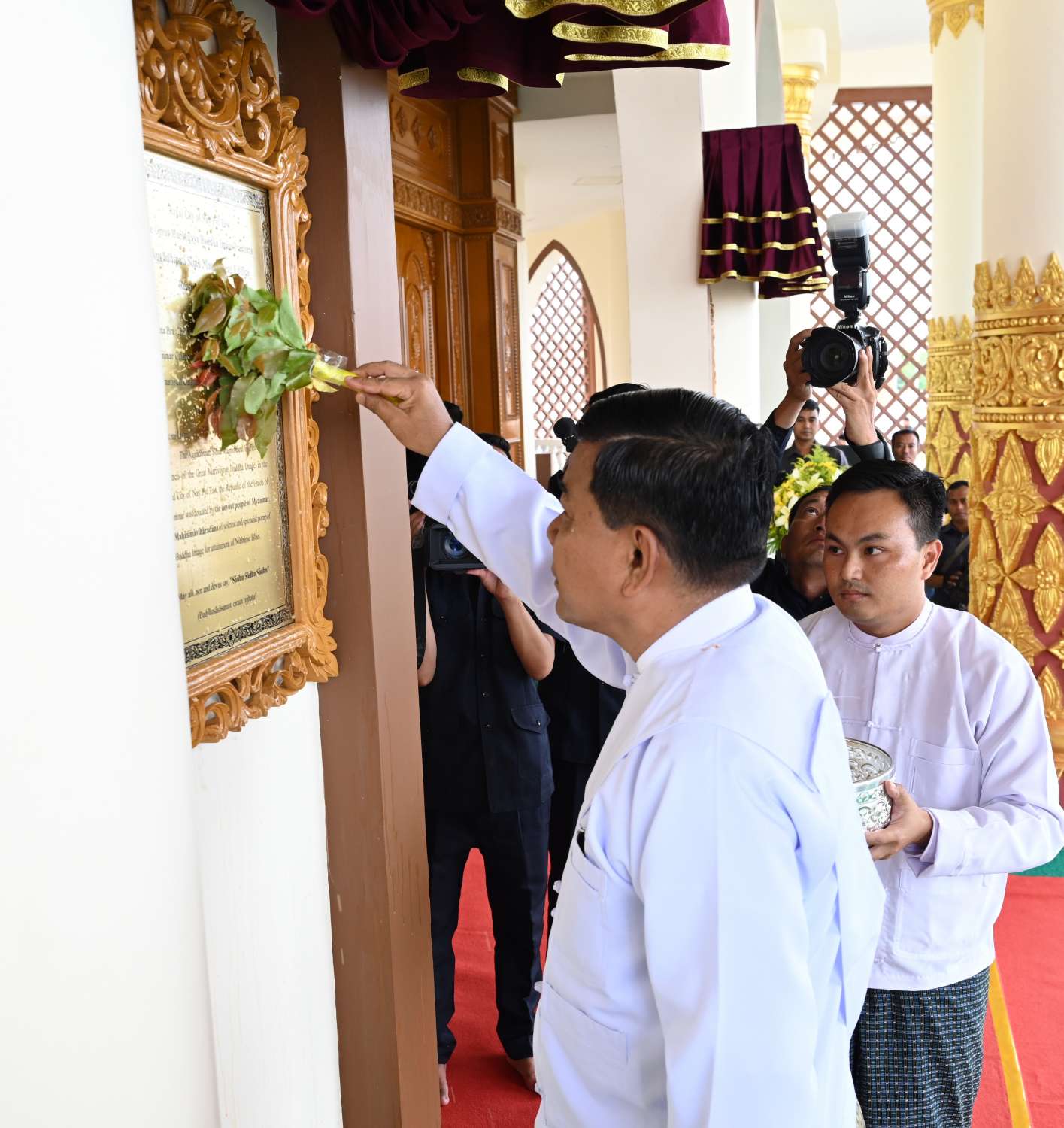 ကမ္ဘာပေါ်ရှိ ထိုင်တော်မူကျောက်ဆစ်ဗုဒ္ဓရုပ်ပွားတော်များအနက် ဉာဏ်တော်အမြင့်ဆုံးဖြစ်လာမည့် မာရဝိဇယဗုဒ္ဓ ရုပ်ပွားတော်မြတ်ကြီးတည်ဆောက်လျက်ရှိသည့် ပြည်ထောင်စုနယ်မြေ နေပြည်တော်၊ ဒက္ခိဏသီရိမြို့နယ်ရှိ မာရဝိဇယ ဗုဒ္ဓဥယျာဉ် ဝတ္ထုကံတော် အဂ္ဂါဓိပတိ သာသနာ့ဗိမာန်တော် မင်္ဂလာမော်ကွန်းကမ္ဗည်းဖွင့်လှစ်ခြင်း၊ ဗုဒ္ဓရုပ်ပွားတော်မြတ်များအား ဥဏ္ဏလုံမွေးရှင်တော် စီသွင်းပူဇော်ခြင်းနှင့် ကျောက်စာရုံ စေတီတော်တွင် မော်ကွန်းကျောက်စာတော် တည်ထားပူဇော်ခြင်း မင်္ဂလာအခမ်းအနား များကို ယနေ့နံနက်ပိုင်းတွင် သီးခြားစီကျင်းပပြုလုပ်ရာ ဦးဆောင်ဘုရားဒါယကာ နိုင်ငံတော်စီမံအုပ်ချုပ်ရေးကောင်စီဥက္ကဋ္ဌ နိုင်ငံတော်ဝန်ကြီးချုပ် ဗိုလ်ချုပ်မှူးကြီးမင်းအောင်လှိုင် တက်ရောက်ပူဇော်သည်။