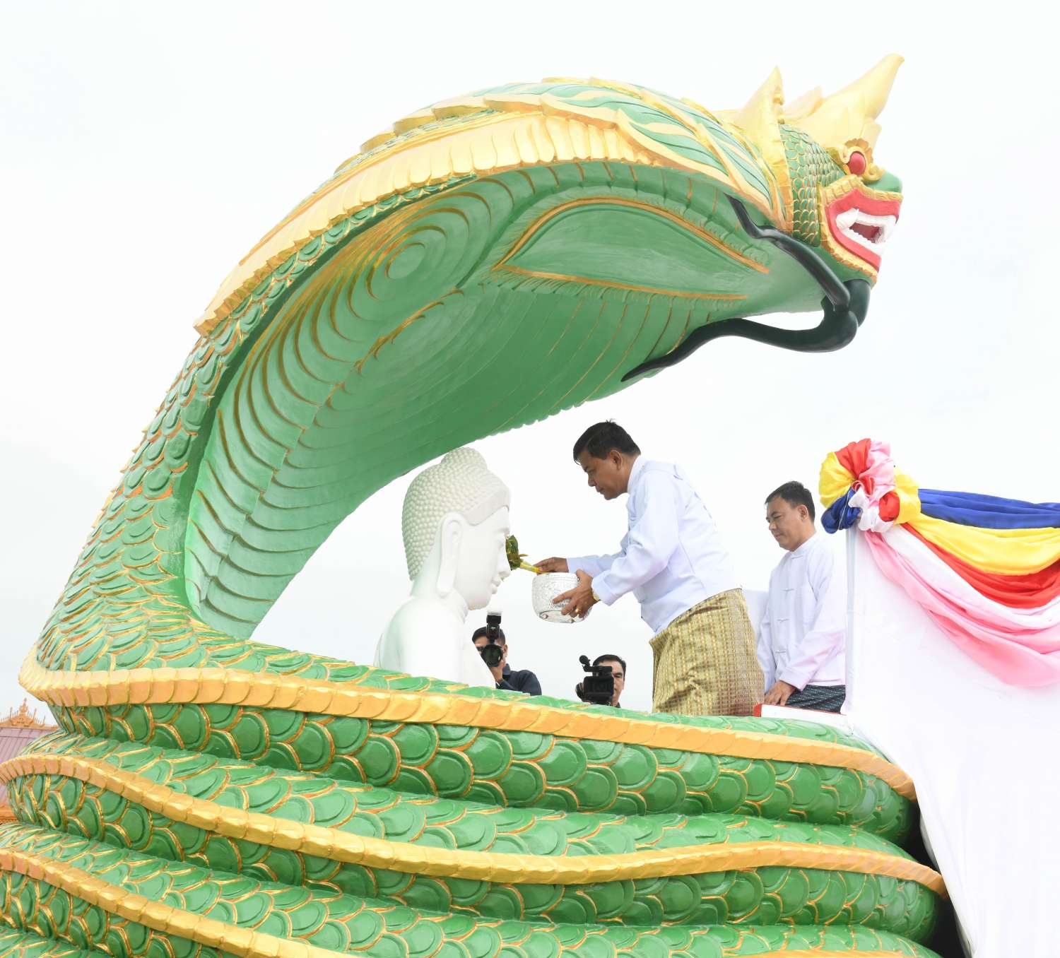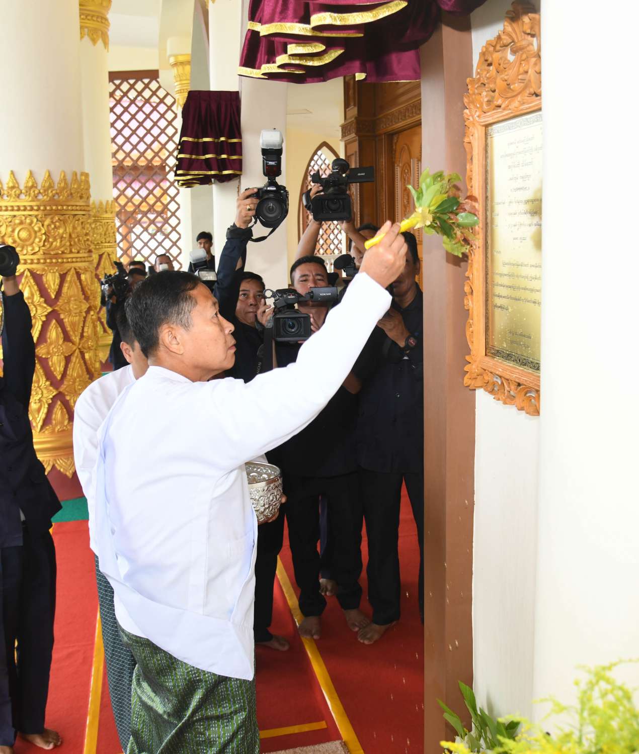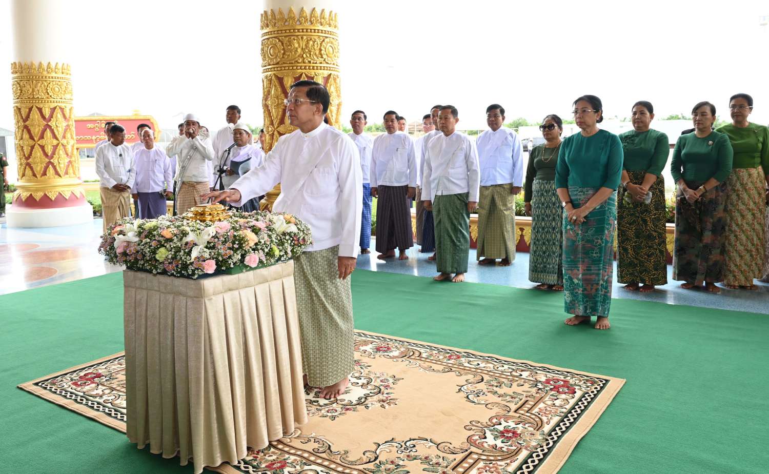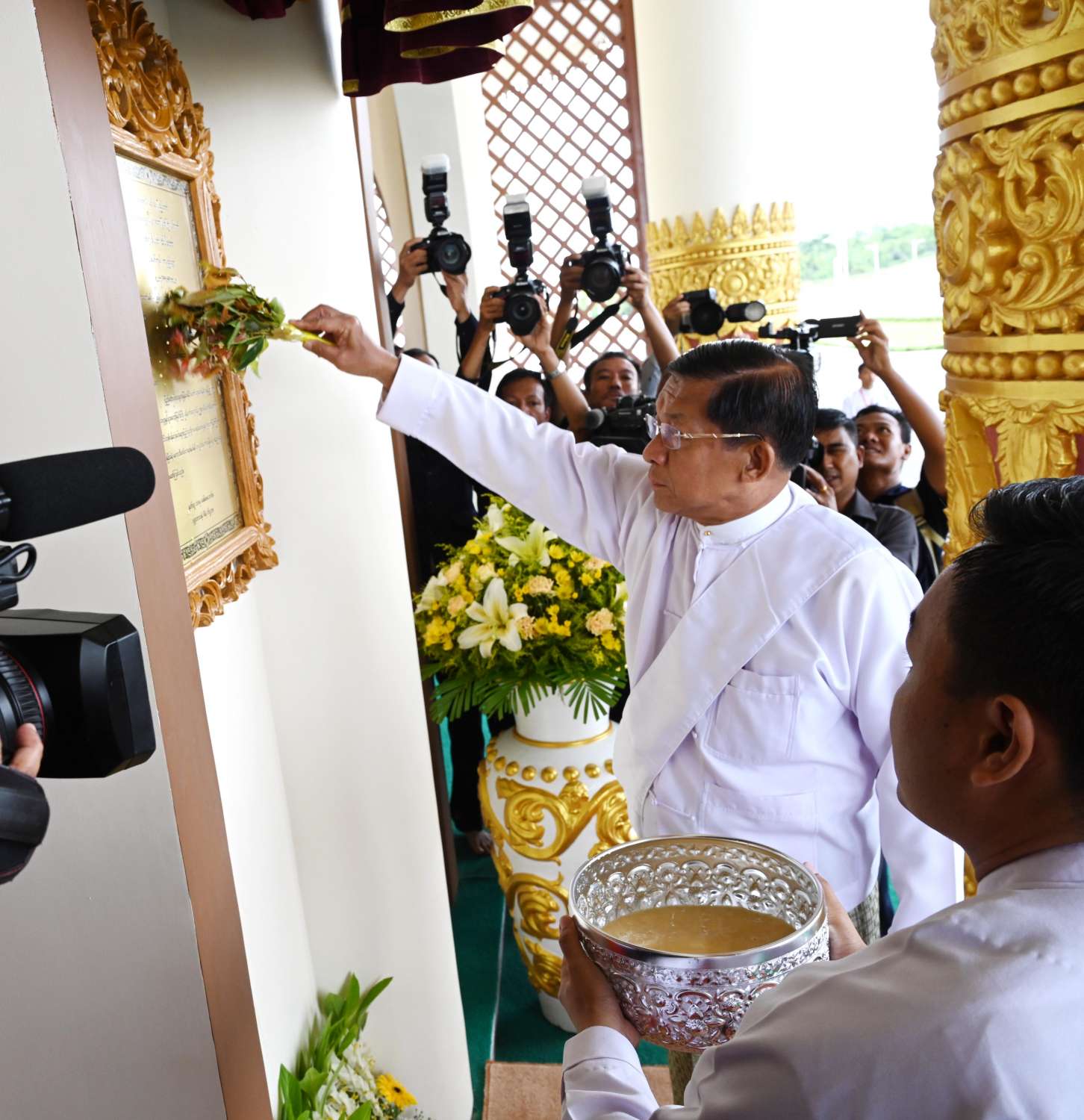 ကမ္ဘာပေါ်ရှိ ထိုင်တော်မူကျောက်ဆစ်ဗုဒ္ဓရုပ်ပွားတော်များအနက် ဉာဏ်တော်အမြင့်ဆုံးဖြစ်လာမည့် မာရဝိဇယဗုဒ္ဓ ရုပ်ပွားတော်မြတ်ကြီးတည်ဆောက်လျက်ရှိသည့် ပြည်ထောင်စုနယ်မြေ နေပြည်တော်၊ ဒက္ခိဏသီရိမြို့နယ်ရှိ မာရဝိဇယ ဗုဒ္ဓဥယျာဉ် ဝတ္ထုကံတော် အဂ္ဂါဓိပတိ သာသနာ့ဗိမာန်တော် မင်္ဂလာမော်ကွန်းကမ္ဗည်းဖွင့်လှစ်ခြင်း၊ ဗုဒ္ဓရုပ်ပွားတော်မြတ်များအား ဥဏ္ဏလုံမွေးရှင်တော် စီသွင်းပူဇော်ခြင်းနှင့် ကျောက်စာရုံ စေတီတော်တွင် မော်ကွန်းကျောက်စာတော် တည်ထားပူဇော်ခြင်း မင်္ဂလာအခမ်းအနား များကို ယနေ့နံနက်ပိုင်းတွင် သီးခြားစီကျင်းပပြုလုပ်ရာ ဦးဆောင်ဘုရားဒါယကာ နိုင်ငံတော်စီမံအုပ်ချုပ်ရေးကောင်စီဥက္ကဋ္ဌ နိုင်ငံတော်ဝန်ကြီးချုပ် ဗိုလ်ချုပ်မှူးကြီးမင်းအောင်လှိုင် တက်ရောက်ပူဇော်သည်။