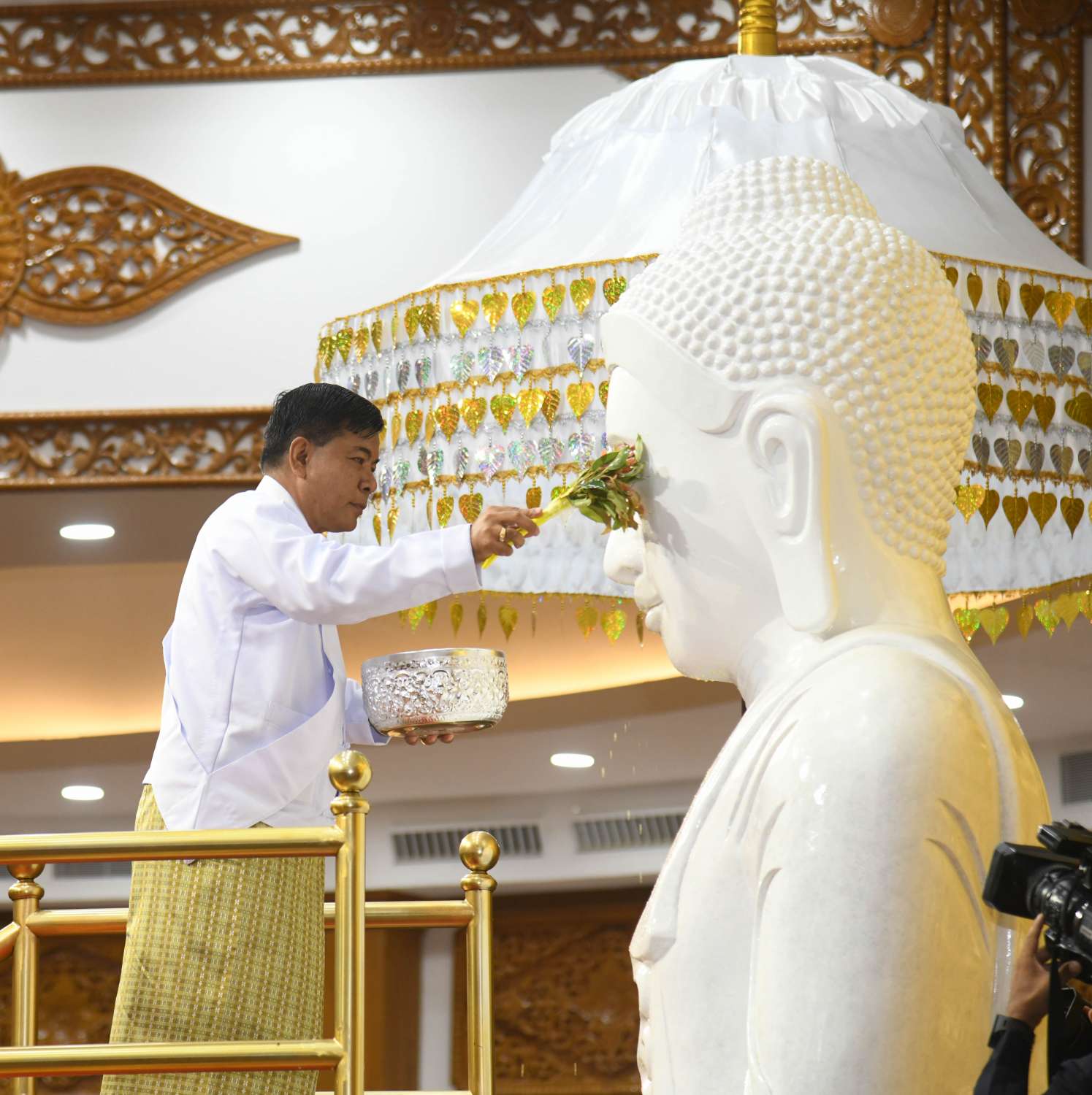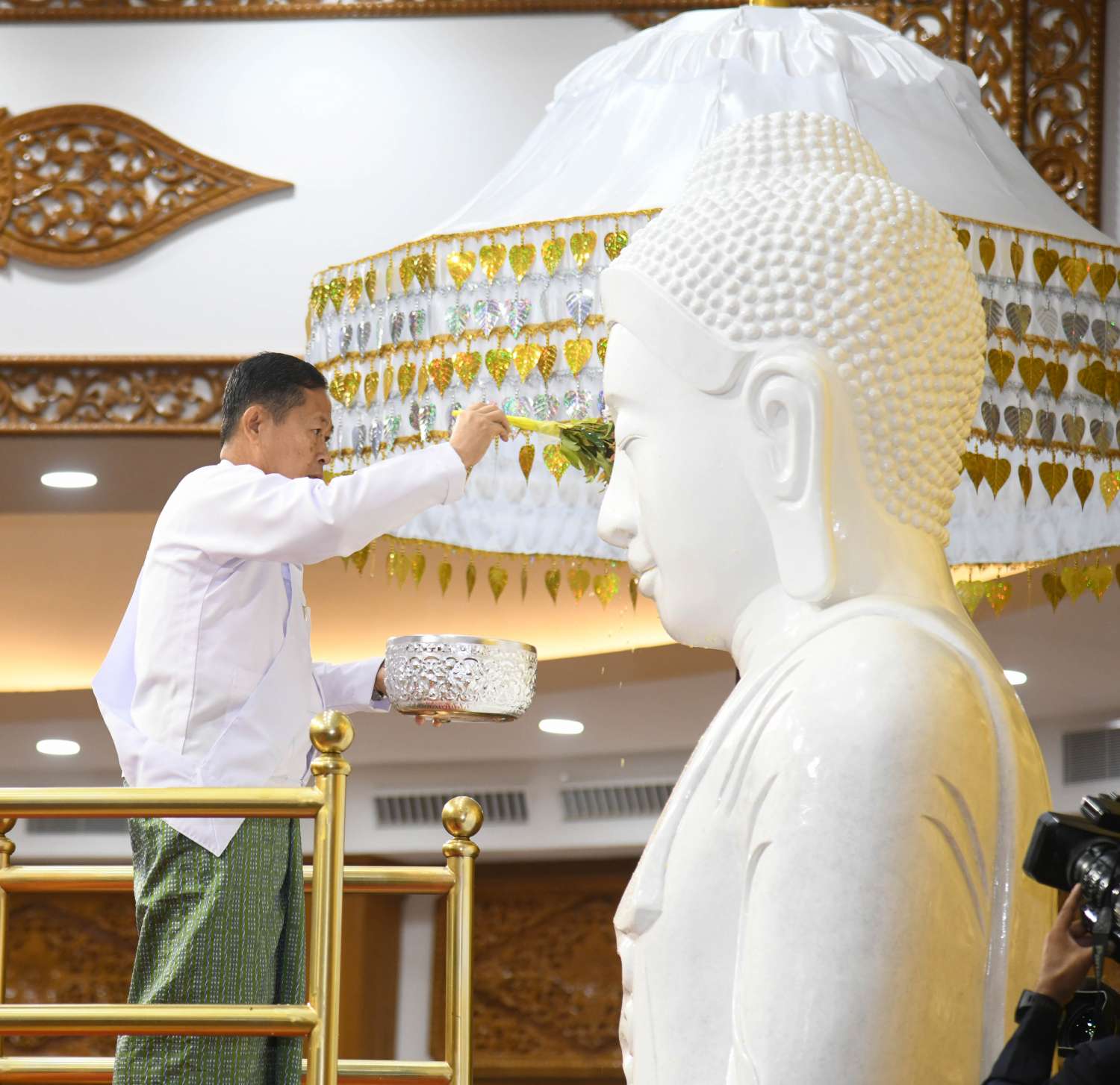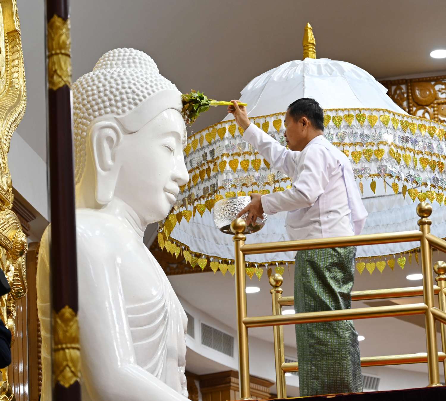 ၎င်းနောက် နိုင်ငံတော်စီမံအုပ်ချုပ်ရေးကောင်စီဒုတိယဥက္ကဋ္ဌ ဒုတိယဝန်ကြီးချုပ်နှင့် ညှိနှိုင်းကွပ်ကဲရေးမှူး (ကြည်း၊ ရေ၊ လေ)တို့က ဗုဒ္ဓရုပ်ပွားတော်မြတ်အား ပရိတ်နံ့သာရည်များဖြင့် ပက်ဖျန်းပူဖော်သည်။