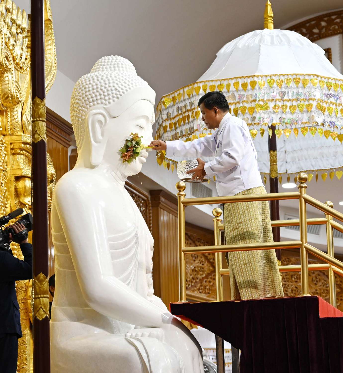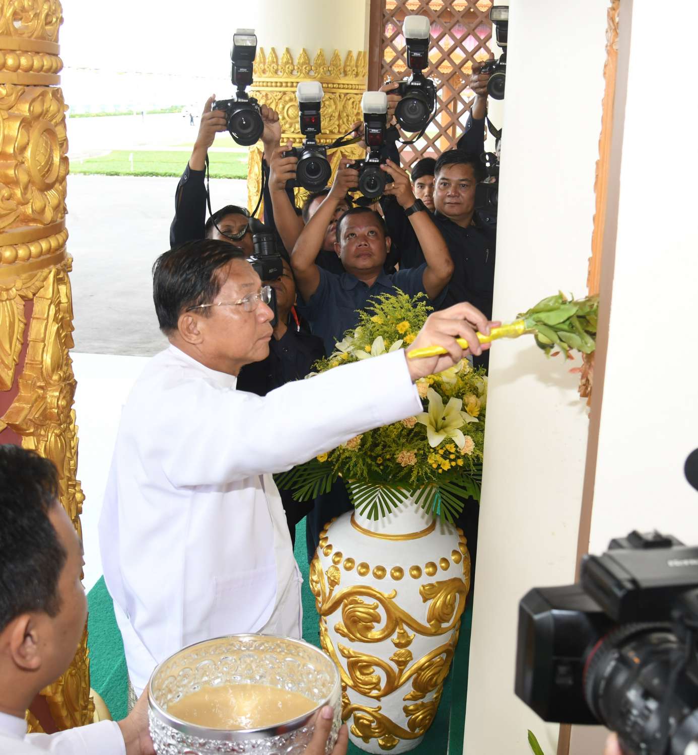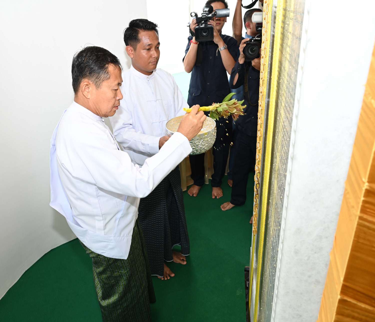 ၎င်းနောက် နိုင်ငံတော်စီမံအုပ်ချုပ်ရေးကောင်စီဒုတိယဥက္ကဋ္ဌ ဒုတိယဝန်ကြီးချုပ်နှင့် ညှိနှိုင်းကွပ်ကဲရေးမှူး (ကြည်း၊ ရေ၊ လေ)တို့က ဗုဒ္ဓရုပ်ပွားတော်မြတ်အား ပရိတ်နံ့သာရည်များဖြင့် ပက်ဖျန်းပူဖော်သည်။