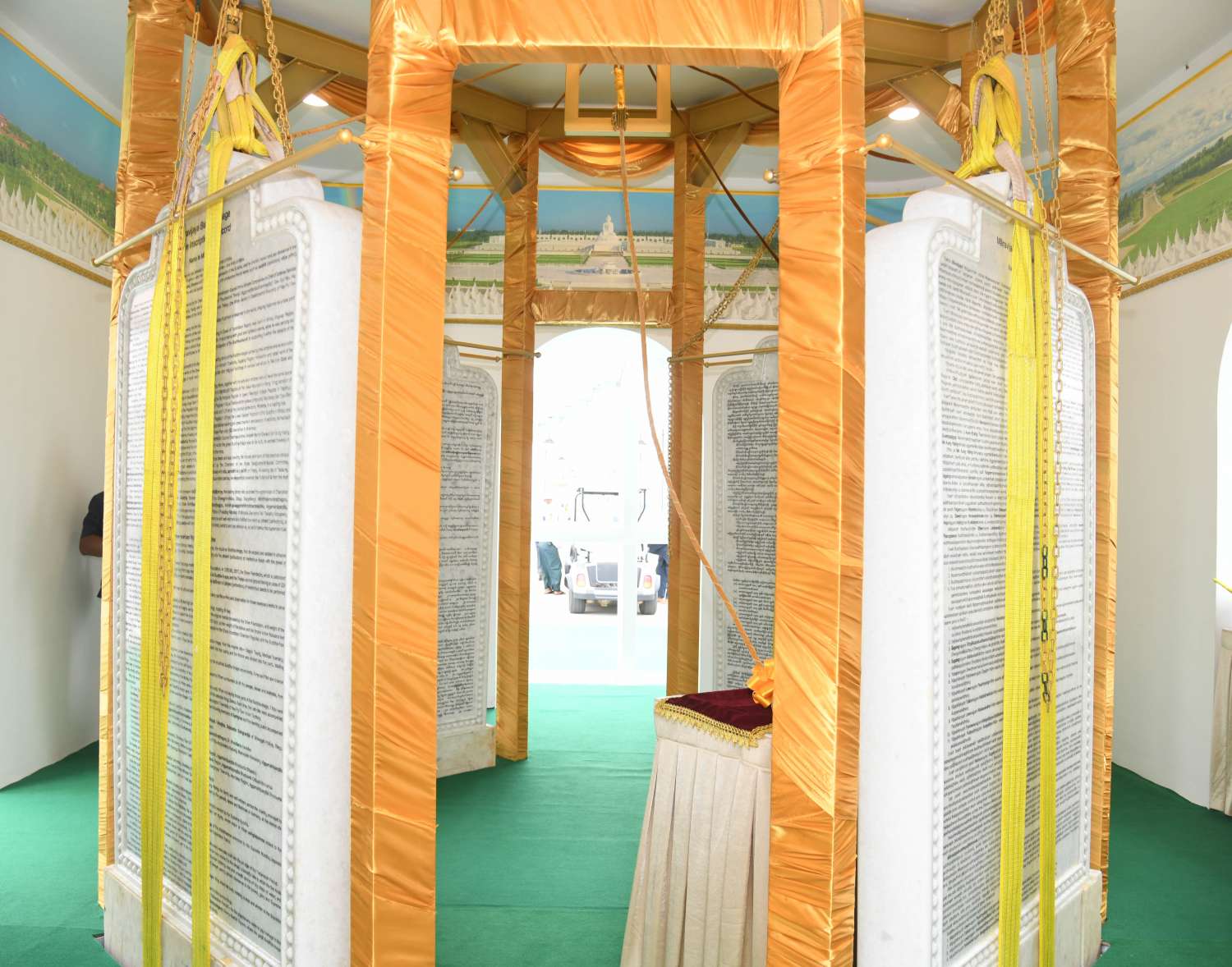 ယင်းနောက် နိုင်ငံတော်စီမံအုပ်ချုပ်ရေးကောင်စီဥက္ကဋ္ဌ နိုင်ငံတော်ဝန်ကြီးချုပ်သည် မော်ကွန်းကျောက်စာတော် တည်ထားပူဇော်မည့် မင်္ဂလာနေရာတွင် နေရာယူပြီး မင်္ဂလာအချိန်တွင် ဦးဆောင်ဘုရားဒါယကာ နိုင်ငံတော်စီမံအုပ်ချုပ်ရေးကောင်စီဥက္ကဋ္ဌ နိုင်ငံတော်ဝန်ကြီးချုပ်က ပါဠိအက္ခရာနှင့် Romanize Language တို့ဖြင့်ရိုက်နှိပ် ပူဇော်ထားသည့် ကျောက်စာချပ်များကို တည်ထားပူဇော်ပြီး ပရိတ်နံ့သာရည်များ ပက်ဖျန်းပူဇော်သည်။