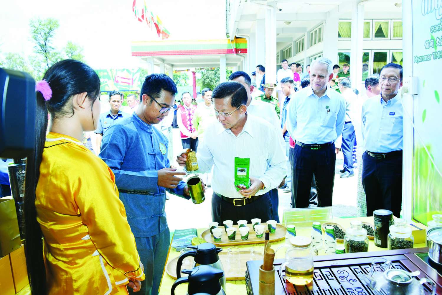 ဆက်လက်၍ နိုင်ငံတော်စီမံအုပ်ချုပ်ရေးကောင်စီဥက္ကဋ္ဌ နိုင်ငံတော်ဝန်ကြီးချုပ်သည် ခင်းကျင်းပြသထားသည့် သယံဇာတတွင်းထွက် ထုတ်ကုန်များ၊ စားသောက်ကုန်၊ လူသုံးကုန်၊ စက်မှုလက်မှုထုတ်ကုန်၊ ရိုးရာလက်မှု ထုတ်ကုန်များ၊ အဝတ်အထည်များ၊ တိုင်းရင်းဆေးများ စသည့်ထုတ်ကုန်ပစ္စည်းများ ခင်းကျင်းပြသထားရှိမှုများကို ပြကွက်တစ်ခုချင်းစီအလိုက် စိတ်ဝင်တစားဖြင့်လေ့လာခဲ့ပြီး ဈေးကွက်ရရှိမှုအခြေအနေများကို မေးမြန်းဆွေးနွေးရာလုပ်ငန်းအလိုက် စီးပွားရေးလုပ်ငန်းရှင်များက လိုက်လံရှင်းလင်းတင်ပြခဲ့ကြသည်။