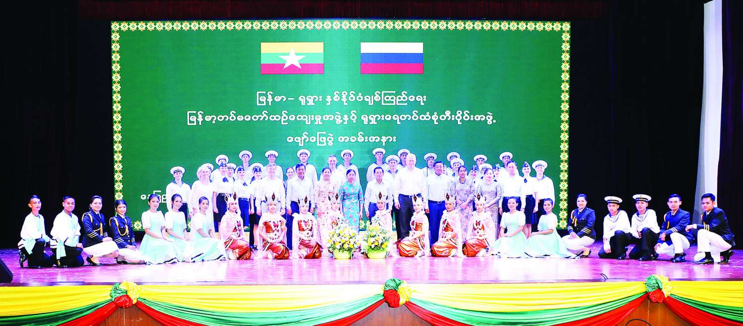 ဖျော်ဖြေပွဲအခမ်းအနားတွင် မြန်မာ-ရုရှားနှစ်နိုင်ငံချစ်ကြည်ရေး မြန်မာ့တပ်မတော် ယဉ်ကျေးမှုအဖွဲ့နှင့် ရုရှားရေတပ်သံစုံတီးဝိုင်းအဖွဲ့တို့မှ အနုပညာရှင်များကဖျော်ဖြေကြရာ ရုရှားရေတပ် သံစုံတီးဝိုင်းအဖွဲ့က ရုရှားသီချင်းများ၊ အကအလှများအပါအဝင် မြန်မာတေးသီချင်းကိုလည်းကောင်း၊ မြန်မာ့တပ်မတော်ယဉ်ကျေးမှုအဖွဲ့ မြဝတီ တေးဂီတအဖွဲ့က “ဆန်းသစ်လှပ ပုဂံယိမ်းအက” အပါအဝင် ရုရှားတေးသီချင်းဖြစ်သည့် “Katyusha” သီချင်းနှင့် “Kalinka” တေးသီချင်း တိုအား မြန်မာ့ရိုးရာတူရိယာ ပစ္စည်းများဖြစ်သည့် မြန်မာ့ဆိုင်းဝိုင်းကြီးနှင့် မြိုင်ဆိုင်စွာတီးခတ်ပြီး ရုရှားအကများဖြင့် လည်းကောင်း၊ ရုရှားတေးသီးချင်းဖြစ်သည့် “Ar Thi Na Si Me Yar” ကိုသီဆို၍လည်းကောင်း အသီးသီးဖျော်ဖြေတင်ဆက်ကြရာ နိုင်ငံတော်စီမံအုပ်ချုပ်ရေးကောင်စီ ဥက္ကဋ္ဌ တပ်မတော်ကာကွယ်ရေးဦးစီးချုပ်နှင့်ဇနီး၊ တက်ရောက်လာကြသူများက ကြည့်ရှု အားပေးကြသည်။