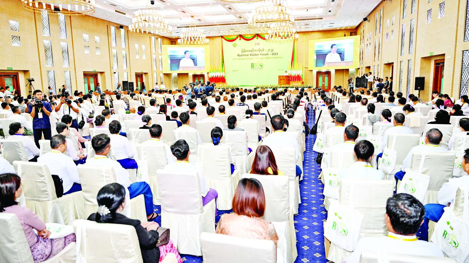 ဦးစွာ နိုင်ငံတော်စီမံအုပ်ချုပ်ရေးကောင်စီဥက္ကဋ္ဌ နိုင်ငံတော်ဝန်ကြီးချုပ်က အမှာစကားပြောကြားရာတွင် ယနေ့ကျင်းပပြုလုပ်သည့် “မြန်မာရော်ဘာဖိုရမ် - ၂၀၂၃” ကို ရော်ဘာထုတ်လုပ်မှုနှင့် အရည်အသွေး တိုးတက်မြင့်မားရေး၊ ယှဉ်ပြိုင်နိုင်စွမ်းရှိသော ရော်ဘာအခြေခံ တန်ဖိုးမြှင့်ထုတ်ကုန်များ ထုတ်လုပ်သည့်လုပ်ငန်းများ ဖွံ့ဖြိုးတိုးတက်လာစေရေးနှင့် ရော်ဘာကဏ္ဍ ဖွံ့ဖြိုးတိုးတက်ရေးအတွက် လိုအပ်သော အဖွဲ့အစည်းများ၊ မူဝါဒ၊ ဥပဒေနှင့် လုပ်ထုံးလုပ်နည်းများ ထွက်ပေါ်လာစေရေးဆိုသည့် ရည်ရွယ်ချက်(၃)ရပ်ဖြင့် ကျင်းပခြင်းဖြစ်ပြီး ဆောင်ပုဒ်မှာ “ရော်ဘာကဏ္ဍ ရေရှည်တည်တံ့ဖွံ့ဖြိုးရေး၊ ထုတ်လုပ်မှုနှင့် တန်ဖိုးမြှင့်ထုတ်ကုန် မြှင့်တင်ပေး”ဟု သတ်မှတ်ထားပါကြောင်း။