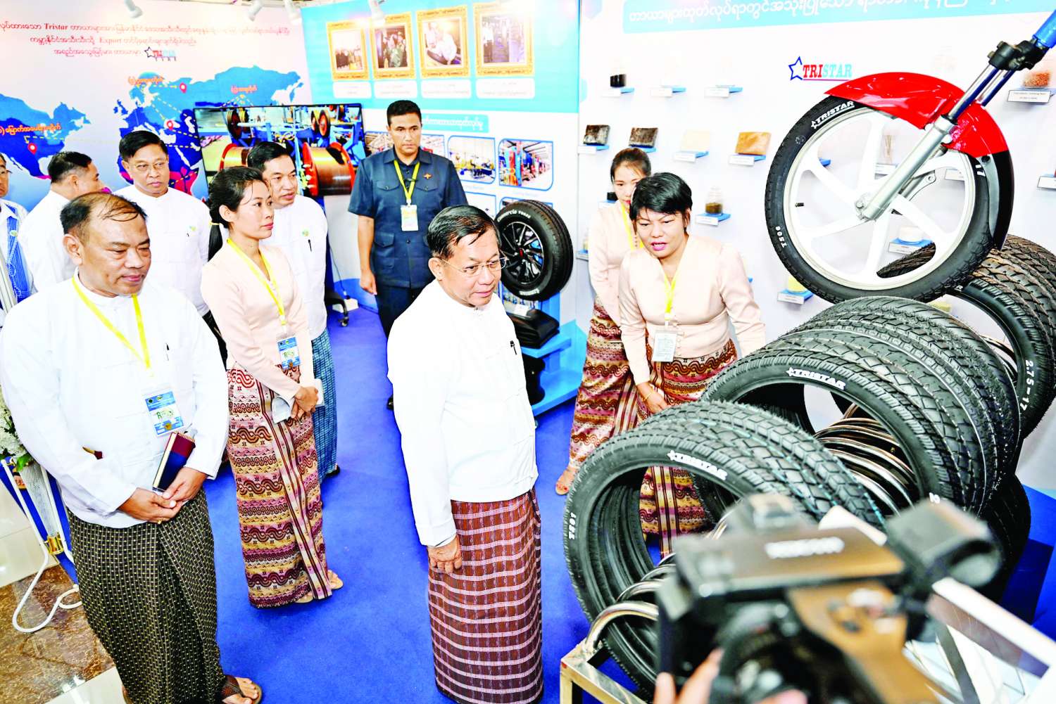 ယင်းနောက် နိုင်ငံတော်စီမံအုပ်ချုပ်ရေးကောင်စီ ဥက္ကဋ္ဌ နိုင်ငံတော်ဝန်ကြီးချုပ်နှင့် အခမ်းအနား တက်ရောက်လာကြသူများသည် စိုက်ပျိုးရေးဦးစီးဌာန မြန်မာ့ရော်ဘာစိုက်ပျိုးမှုဆိုင်ရာ ပြခန်းများ၊ ရော်ဘာစိုက်ပျိုးရေးခြံသုံး စက်ပစ္စည်းပြခန်းများ၊ ပြည်တွင်းမှ ထုတ်လုပ်ထားရှိသည့် ကားတာယာများ၊ စက်ဘီးနှင့် မော်တော်ဆိုင်ကယ်တာယာများ၊ ကျွတ်များနှင့် ရော်ဘာထုတ်ကုန် ပြခန်းများကို စိတ်ပါဝင်စားစွာ လှည့်လည် ကြည့်ရှုခဲ့ကြောင်း သိရသည်။