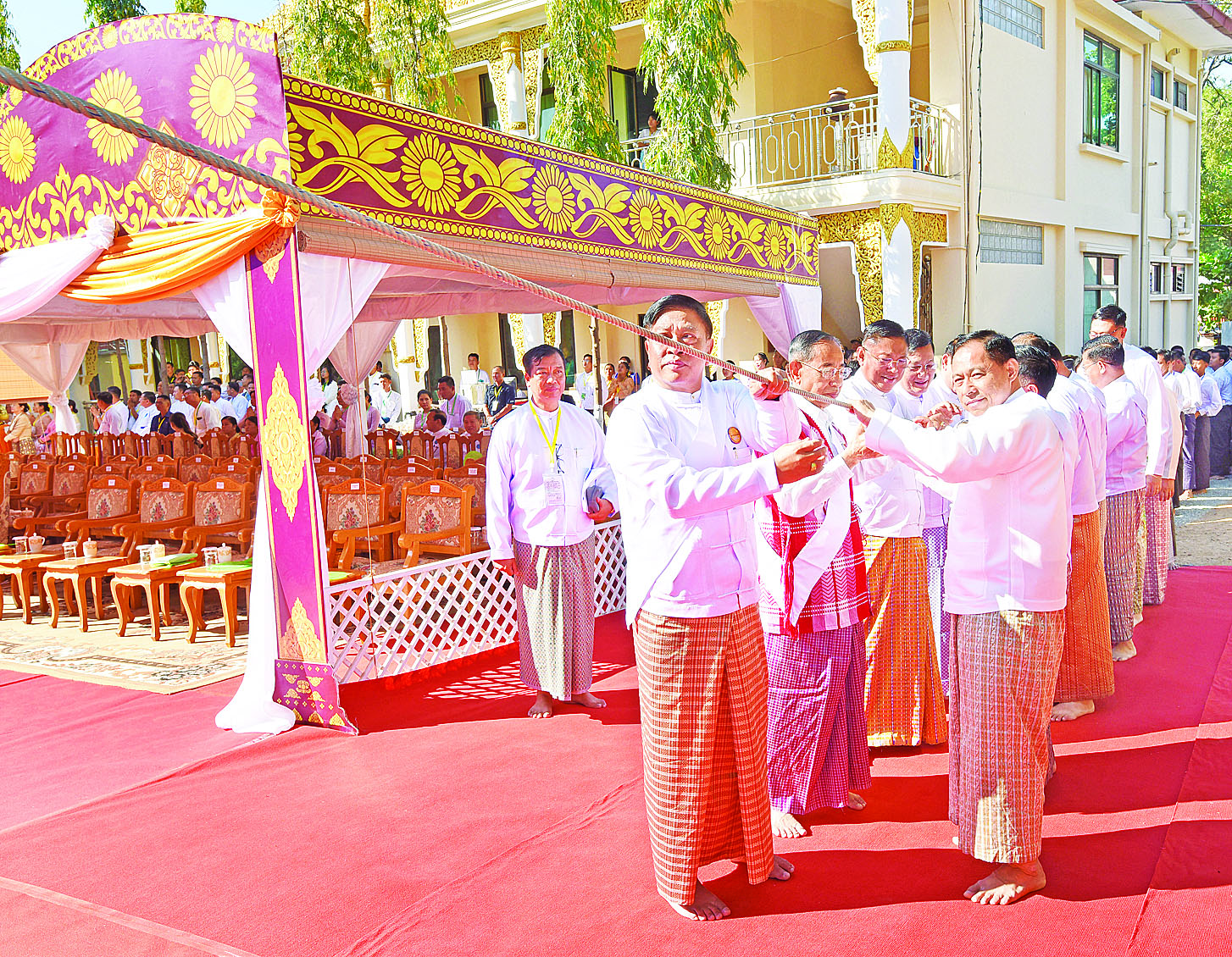 အဆိုပါ အခမ်းအနားသို့ နိုင်ငံတော်စီမံအုပ်ချုပ်ရေးကောင်စီဥက္ကဋ္ဌ နိုင်ငံတော်ဝန်ကြီးချုပ် ဗိုလ်ချုပ်မှူးကြီး မင်းအောင်လှိုင်နှင့် ဇနီးဒေါ်ကြူကြူလှ၊ ကောင်စီတွဲဖက်အတွင်းရေးမှူး ဒုတိယဗိုလ်ချုပ်ကြီး ရဲဝင်းဦးနှင့်ဇနီး၊ ကောင်စီဝင်များနှင့်ဇနီးများ၊ ပြည်ထောင်စုအဆင့်ပုဂ္ဂိုလ်များ၊ ပြည်ထောင်စုဝန်ကြီးများနှင့် ဇနီးများ၊ နေပြည်တော်ကောင်စီဥက္ကဋ္ဌနှင့် ဇနီး၊ ကာကွယ်ရေးဦးစီးချုပ်ရုံးမှ အဆင့်မြင့် တပ်မတော်အရာရှိကြီးများနှင့် ဇနီးများ၊ နေပြည်တော် တိုင်းစစ်ဌာနချုပ်တိုင်းမှူး၊ အလှူရှင်များနှင့် ဖိတ်ကြားထားသည့် ဧည့်သည်တော်များ၊ ဝတ်အသင်းအဖွဲ့များနှင့် ဒေသခံပြည်သူများ တက်ရောက်ကြသည်။
