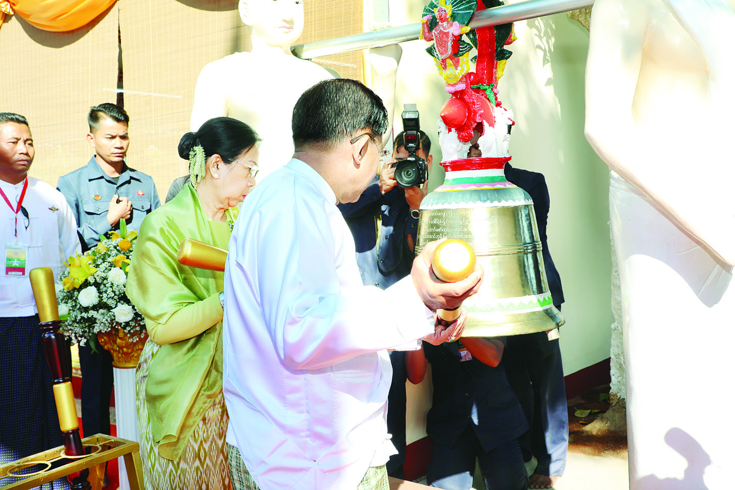 ယင်းနောက် နိုင်ငံတော်စီမံအုပ်ချုပ်ရေးကောင်စီဥက္ကဋ္ဌ နိုင်ငံတော်ဝန်ကြီးချုပ်နှင့်ဇနီးတို့သည် မင်္ဂလာမော်ကွန်းကမ္ပည်းကျောက်စာတော်ကို အမွှေးနံ့သာရည်များ ပက်ဖျန်းဖွင့်လှစ်၍ ရတနာရွှေခေါင်းလောင်းတော်ကို ထိုးခတ်ပူဇော်သည်။