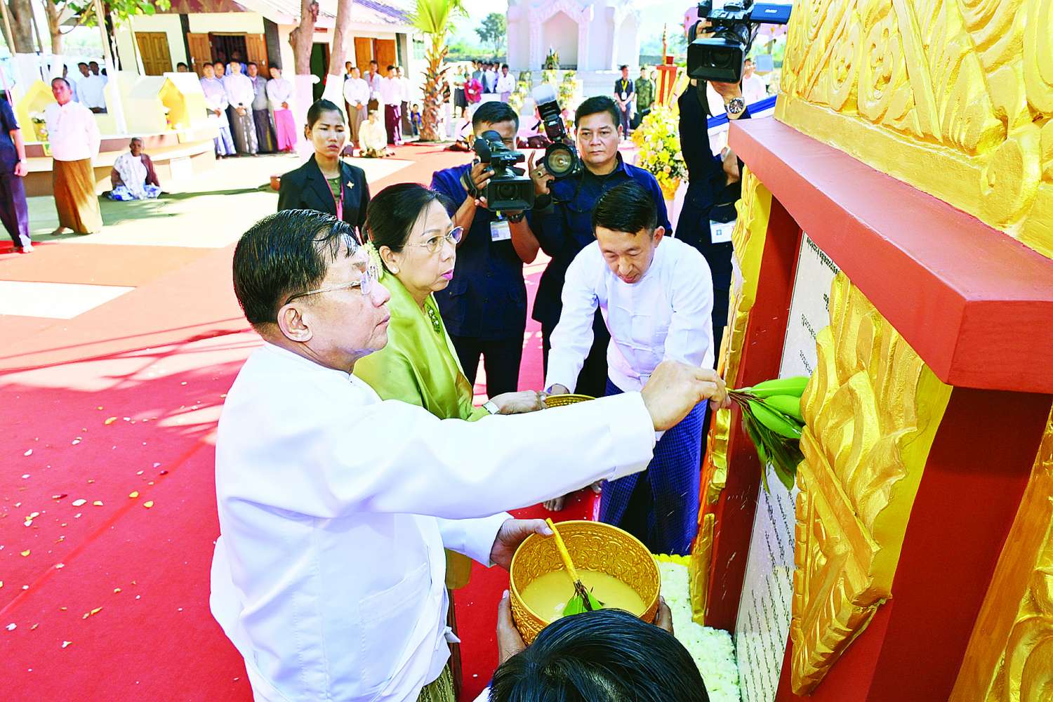 ယင်းနောက် နိုင်ငံတော်စီမံအုပ်ချုပ်ရေးကောင်စီဥက္ကဋ္ဌ နိုင်ငံတော်ဝန်ကြီးချုပ်နှင့်ဇနီးတို့က မဟာမင်္ဂလာအခမ်းအနား အောင်မြင်ခြင်းအထိမ်းအမှတ်အဖြစ် ရတနာ ရွှေမိုး၊ ငွေမိုးများ ရွာသွန်းဖြိုးကြသည်။