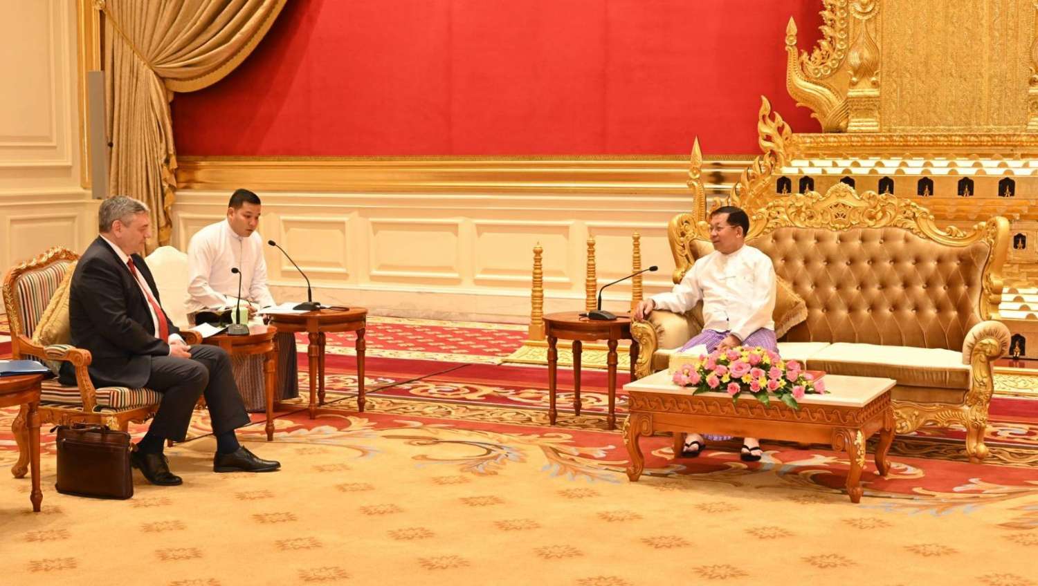 နိုင်ငံတော်စီမံအုပ်ချုပ်ရေးကောင်စီဥက္ကဋ္ဌ နိုင်ငံတော်ဝန်ကြီးချုပ် ဗိုလ်ချုပ်မှူးကြီး မင်းအောင်လှိုင်ထံ ရုရှားဖက်ဒရေးရှင်းနိုင်ငံ၊ နိုင်ငံခြားရေးဝန်ကြီးဌာန ဒုတိယဝန်ကြီး H.E. Mr. Andrey Rudenko ဦးဆောင်သောကိုယ်စားလှယ်အဖွဲ့က ယနေ့ မွန်းလွဲပိုင်းတွင် နေပြည်တော်ရှိ နိုင်ငံတော်စီမံအုပ်ချုပ်ရေးကောင်စီဥက္ကဋ္ဌရုံး သံတမန်ဆောင်ဧည့်ခန်းမ၌ လာရောက်ဂါရဝပြုတွေ့ဆုံသည်။