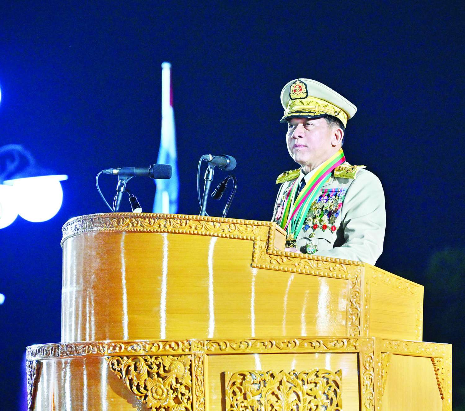 တိုင်းပြည်တည်ငြိမ်အေးချမ်းဖို့နဲ့ ပြည်သူ့စစ်မဟာဗျူဟာကို ဖော်ဆောင်ဖို့လုပ်ဆောင်ရာမှာ ပြည်သူ့စစ်အဖွဲ့တွေ၊ ဒေသခံကာကွယ် ရေးအဖွဲ့တွေဖွဲ့စည်းခြင်းထက် ဥပဒေနဲ့ပိုမိုညီညွတ်ပြီး စည်းစနစ်ကျတဲ့ ပြည်သူ့စစ်မှုထမ်းစနစ်ကို အကောင်အထည်ဖော်ဆောင်ရွက်သွား ရမှာပဲဖြစ်တယ်။ တို့နိုင်ငံရဲ့ ပထဝီနိုင်ငံရေးအနေအထားနဲ့ လက်ရှိကမ္ဘာမှာဖြစ်ပျက်နေတဲ့ အခြေအနေတွေအရ ဒီဥပဒေပြဋ္ဌာန်းချက်ကို မဖြစ်မနေဆောင်ရွက်သွားရမှာဖြစ်လို့ ယခုနှစ်၊ ဖေဖော်ဝါရီလ ၁၀ ရက်နေ့မှာ ပြည်သူ့စစ်မှုထမ်းဥပဒေကို အာဏာတည်စေခဲ့ပြီးဖြစ်တယ်။ ဒီလိုလုပ်ဆောင်ရခြင်းရဲ့ အဓိကရည်ရွယ်ချက်ဟာ တို့နိုင်ငံရဲ့အမျိုးသားရေးတာဝန်ဖြစ်တဲ့ ဒို့တာဝန် အရေးသုံးပါးကို ကာကွယ်စောင့်ရှောက်ရန်အတွက်ဖြစ်တယ်။ ဒါ့အပြင် နိုင်ငံတော်ကာကွယ်ရေးတာဝန်များကို ကျေပွန်စွာ ထမ်းဆောင်ခဲ့ပြီးတဲ့ စစ်မှုထမ်းဟောင်းများအနေနဲ့လည်း တိုင်းချစ်ပြည်ချစ်စိတ်ဓာတ်၊ အမျိုးဘာသာ သာသနာကို ကာကွယ်လိုတဲ့ စိတ်ဓာတ်၊ ဒို့တာဝန်အရေးသုံးပါးကို အထိမခံတဲ့ စိတ်ဓာတ်တွေနဲ့ ကျရာအခန်းကဏ္ဍက နိုင်ငံတော်ကာကွယ်ရေးတာဝန်များကို ပြန်လည်ထမ်းဆောင်ပါမယ်ဆိုတဲ့ သတင်းပို့တောင်းဆိုမှုတွေ များပြားလာတာကြောင့် အရန်တပ်ဖွဲ့ဥပဒေကို ယခုနှစ်၊ ဖေဖော်ဝါရီလ ၁၃ ရက်နေ့မှာ အာဏာတည်စေခဲ့ပြီးဖြစ်တယ်။ အဲဒီအရန်တပ်ဖွဲ့ ဥပဒေကို အကောင်အထည်ဖော်ဆောင်ရာမှာလည်း စစ်မှုထမ်းဟောင်းအားလုံးကို ပြန်လည်ခေါ်ယူမှာမဟုတ်ဘဲ ခေါ်သင့်ခေါ်ထိုက်သူများကိုသာ ပြန်လည်ခေါ်ယူတာဝန်ပေးအပ်သွားမှာဖြစ်တယ်။ ဒီဥပဒေနှစ်ရပ်ကို အကောင်အထည်ဖော်ဆောင်ရွက်တာကြောင့် ကာကွယ်ရေးအင်အားကို အထိုက်အလျောက် မြင့်တက်လာစေမှာဖြစ်ပြီး အဲဒီကမှတစ်ဆင့် နိုင်ငံတော်တည်ငြိမ်အေးချမ်းရေးနဲ့ တရားဥပဒေစိုးမိုးရေးအတွက် လုပ်ဆောင်သင့် လုပ်ဆောင်ထိုက်တာတွေကို တစ်ဆင့်ပြီးတစ်ဆင့် ဆက်လက်ဆောင်ရွက်သွားမှာဖြစ်ကြောင်း ပြောကြားလိုတယ်။