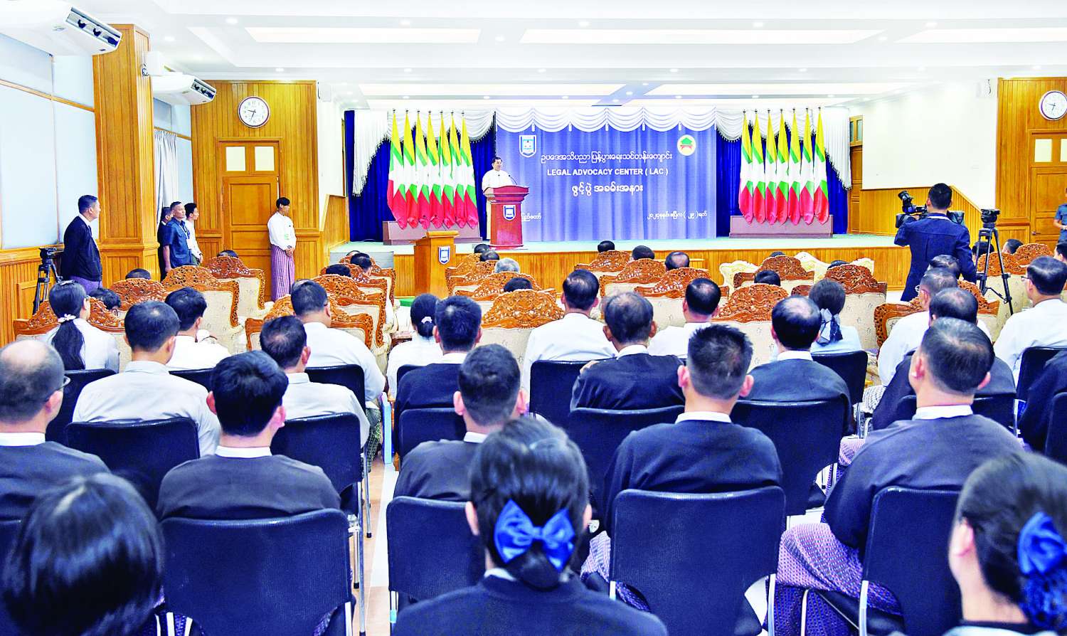 ဥပဒေရေးရာဝန်ကြီးဌာနသည် ပြည်ထောင်စုအစိုးရအတွက် အဓိကကျသည့်အခန်းကဏ္ဍမှ ပါဝင်လျက်ရှိပြီး နိုင်ငံတော်၏ရှေ့ဆက်ရမည့် လုပ်ငန်းများတွင် ဥပဒေပြုရေး၊ အုပ်ချုပ်ရေး၊ တရားစီရင်ရေးဆိုသည့် ကဏ္ဍအသီးသီးမှ ပါဝင်ဆောင်ရွက်ပေးလျက်ရှိသည့် ဝန်ကြီးဌာနဖြစ်ကြောင်း၊ ဥပဒေရေးရာဝန်ကြီးဌာနသည် နိုင်ငံတော်၏ တရားဥပဒေစိုးမိုးရေးအတွက် ပြည်သူများအကြား ဥပဒေအသိပညာပြန့်ပွားရေးကိုရည်ရွယ်ပြီး ဥပဒေဝန်ဆောင်မှုလုပ်ငန်းများကို ပုံသဏ္ဌာန်မျိုးစုံဖြင့် အကောင်အထည်ဖော်ပေးရခြင်းလည်းဖြစ်ကြောင်း၊ ထို့ကြောင့် ယခုဖွင့်လှစ်သည့် ဥပဒေအသိပညာ ပြန့်ပွားရေးသင်တန်းကျောင်း (Legal Advocacy Center)သည် ဥပဒေအသိပညာများကို ကျယ်ကျယ်ပြန့်ပြန့် ဖြန့်ဖြူးပေးနိုင်မည့်နေရာတစ်ခုအဖြစ် ပေါ်ပေါက်လာမည်ဖြစ်သဖြင့် များစွာဂုဏ်ယူဝမ်းမြောက်မိပါကြောင်းနှင့် နိုင်ငံတော်အတွက် အကျိုးရှိမည့်နေရာတစ်ခုဖြစ်သည်ဟုလည်း ဆိုရမည်ဖြစ်ကြောင်း။