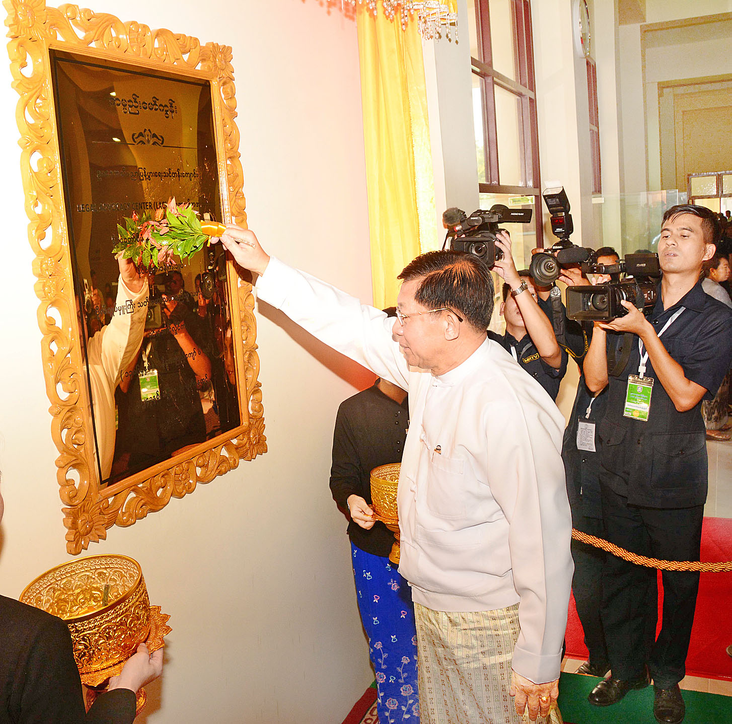 ဥပဒေရေးရာဝန်ကြီးဌာန၊ ဥပဒေအသိပညာပြန့်ပွားရေး သင်တန်းကျောင်း LEGAL ADVOCACY CENTER (LAC) ဖွင့်ပွဲအခမ်းအနားကို ယနေ့နံနက်ပိုင်းတွင် နေပြည်တော်ကောင်စီနယ်မြေ၊ ဥတ္တရသီရိမြို့နယ်၊ ဇဝနသိဒ္ဓိရပ်ကွက်ရှိ အဆိုပါသင်တန်းကျောင်း၌ ကျင်းပပြုလုပ်ရာ နိုင်ငံတော်စီမံအုပ်ချုပ်ရေးကောင်စီဥက္ကဋ္ဌ နိုင်ငံတော်ဝန်ကြီးချုပ် ဗိုလ်ချုပ်မှူးကြီးမင်းအောင်လှိုင် တက်ရောက်ဖွင့်လှစ်ပေးပြီး အမှာစကား ပြောကြားသည်။
