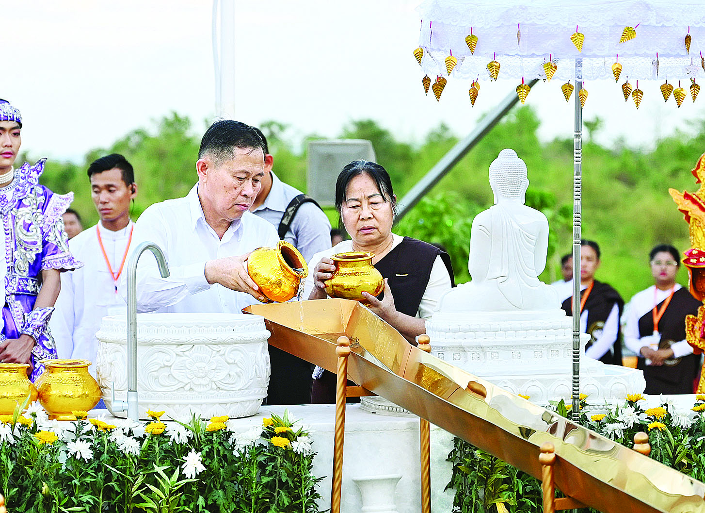ဦးစွာ နိုင်ငံတော်စီမံအုပ်ချုပ်ရေးကောင်စီဥက္ကဋ္ဌ နိုင်ငံတော်ဝန်ကြီးချုပ်နှင့်ဇနီးတို့သည် မာရဝိဇယဗုဒ္ဓရုပ်ပွားတော်မြတ်ကြီအား ပန်း၊ ရေချမ်းနှင့် ဆီမီးများ ကပ်လှူပူဇော်ပြီး ဖူးမြော်ကြည်ညိုကြသည်။