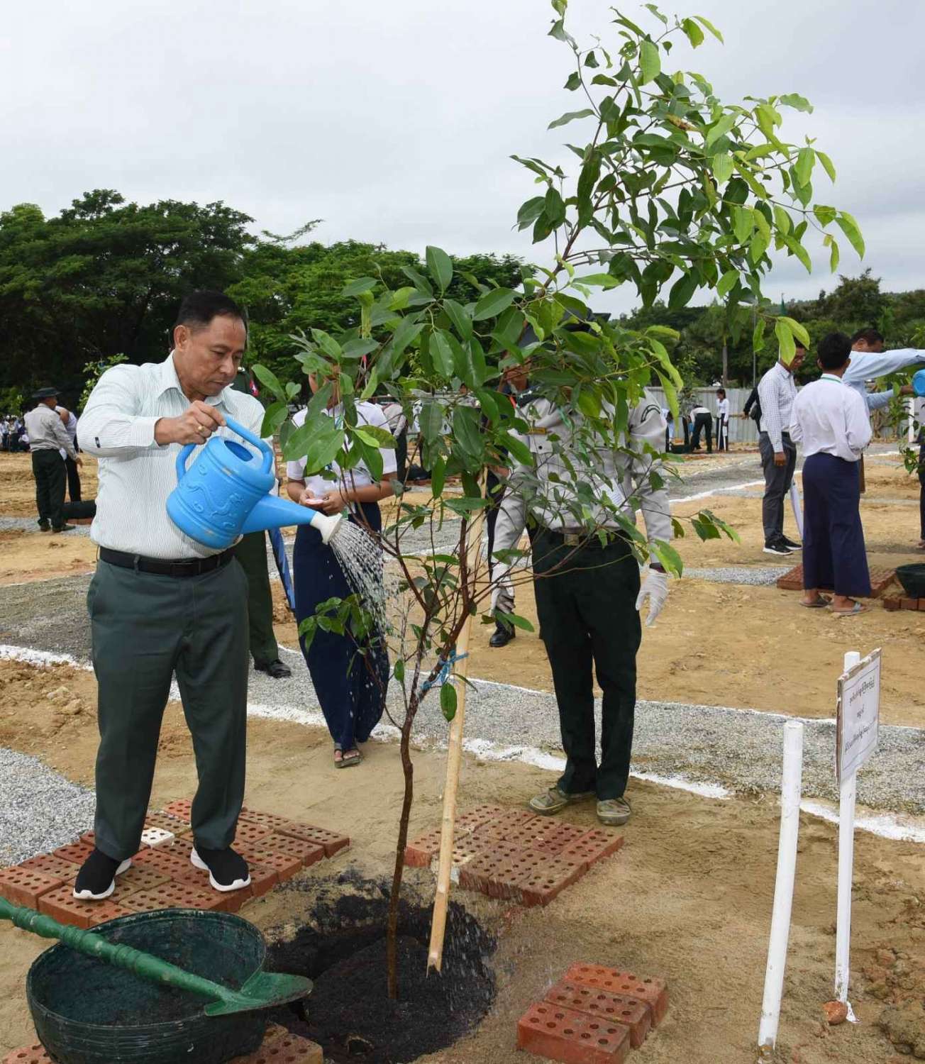 ယင်းနောက်အခမ်းအနားသို့ တက်ရောက်လာကြသည့် ကောင်စီအတွင်းရေးမှူး၊ တွဲဖက်အတွင်းရေးမှူး၊ ကောင်စီအဖွဲ့ဝင်များ၊ ပြည်ထောင်စုအဆင့်ပုဂ္ဂိုလ်မျာနှင့် ပြည်ထောင်စုဝန်ကြီးများ၊ ဖိတ်ကြားထားသည့် ဧည့်သည်တော်ကြီးများနှင့် နေပြည်တော် နည်းပညာတက္ကသိုလ် ပါမောက္ခချုပ်၊ ဒုတိယပါမောက္ခချုပ်၊ ကထိကဆရာ၊ ဆရာမကြီးများ၊ ကျောင်းသား၊ ကျောင်းသူများ၊ ဝန်ကြီးဌာနများမှ ဌာနဆိုင်ရာ အရာထမ်း၊ အမှုထမ်းများနှင့် တာဝန်ရှိသူများသည် ပျိုးပင်များကို တစ်ပြိုင်တည်း စိုက်ပျိုးပေးကြသည်။