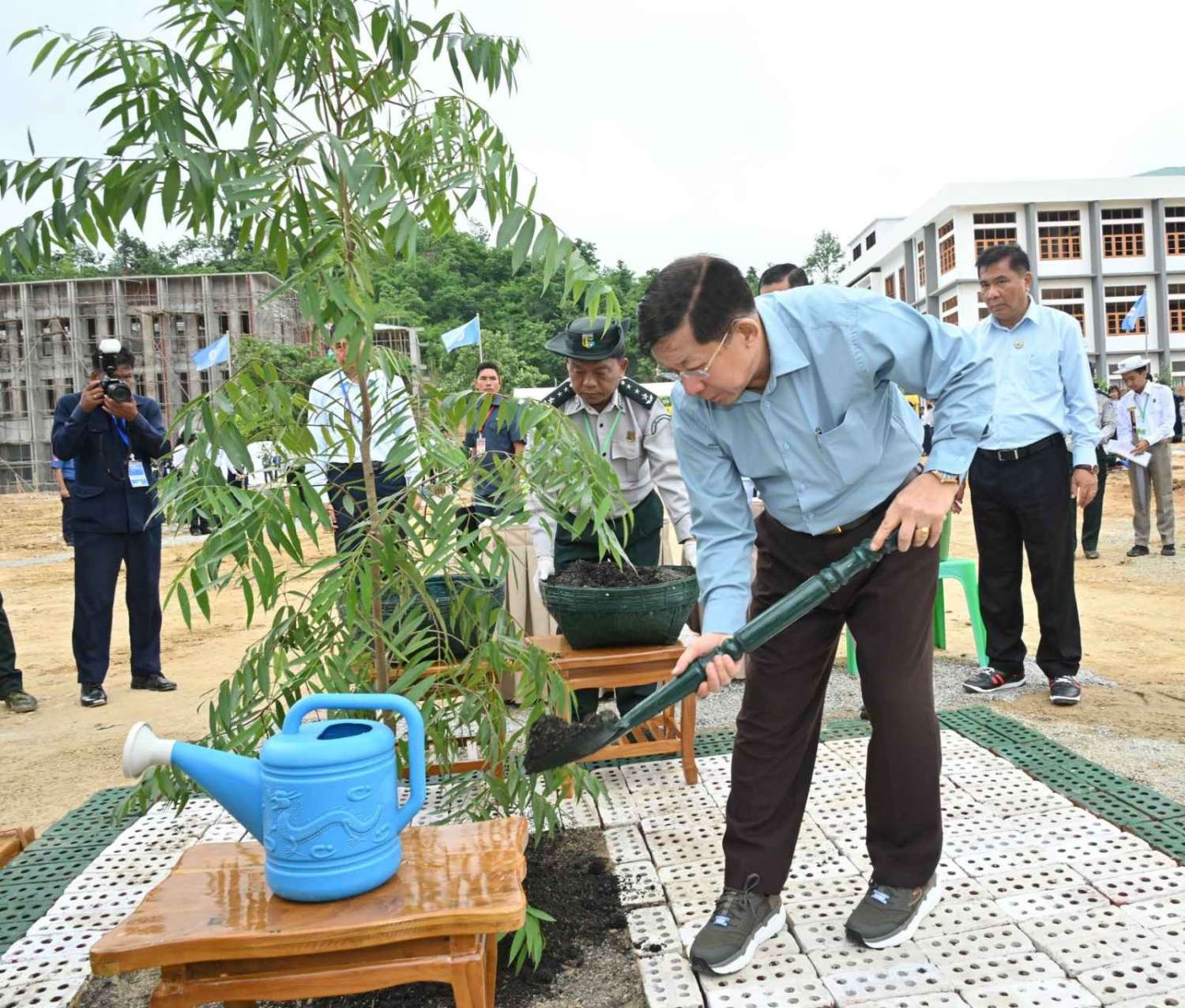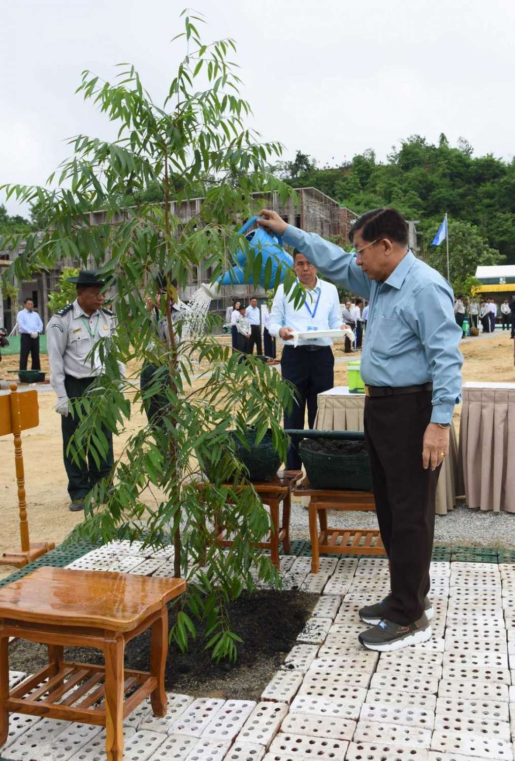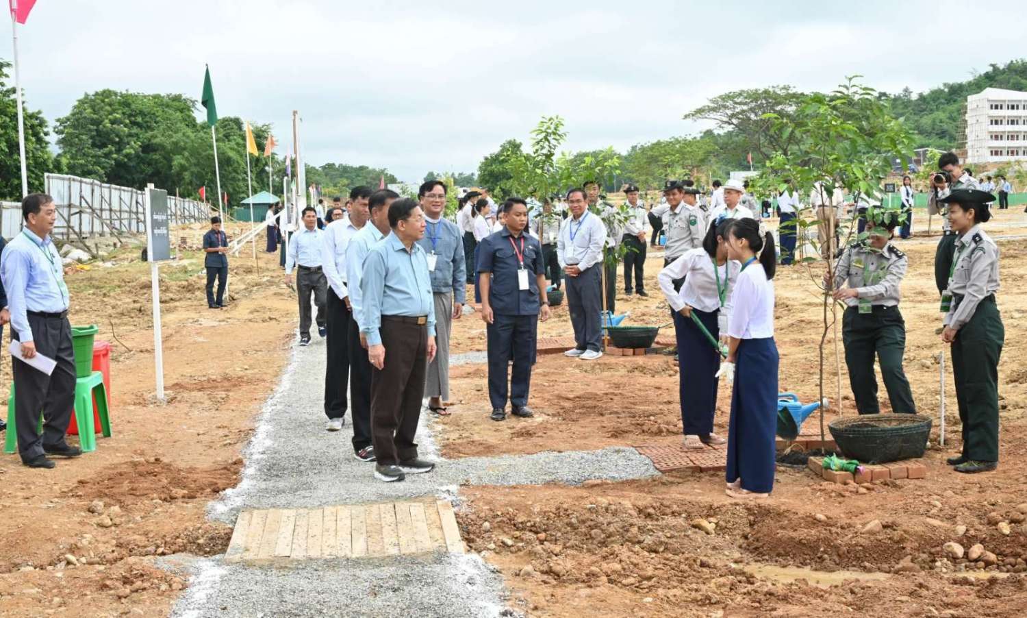 နိုင်ငံတော်စီမံအုပ်ချုပ်ရေးကောင်စီဥက္ကဋ္ဌ နိုင်ငံတော်ဝန်ကြီးချုပ် ဗိုလ်ချုပ်မှူးကြီး မင်းအောင်လှိုင် ပြည်ထောင်စုနယ်မြေ၊ နေပြည်တော် ၂၀၂၄ ခုနှစ်၊ ဒုတိယအကြိမ် မိုးရာသီသစ်ပင်စိုက်ပျိုးပွဲသို့ တက်ရောက်၍ ကံ့ကော်ပျိုးပင်အား ဦးဆောင်စိုက်ပျိုးပေး
