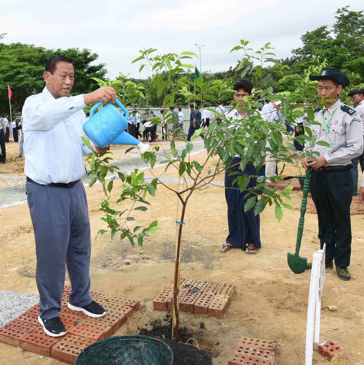 ပြည်ထောင်စုနယ်မြေ၊ နေပြည်တော်၊ ၂၀၂၄ ခုနှစ်၊ ဒုတိယအကြိမ် မိုးရာသီသစ်ပင်စိုက်ပျိုးပွဲအခမ်းအနားကို ယနေ့နံနက်ပိုင်းတွင် ပြည်ထောင်စုနယ်မြေ နေပြည်တော်ရှိ Naypyitaw State Polytechnic University ပရဝုဏ်အတွင်း၌ ကျင်းပရာ နိုင်ငံတော်စီမံအုပ်ချုပ်ရေးကောင်စီဥက္ကဋ္ဌ နိုင်ငံတော်ဝန်ကြီးချုပ် ဗိုလ်ချုပ်မှူးကြီး မင်းအောင်လှိုင် တက်ရောက်၍ ကံ့ကော်ပျိုးပင်ကို ဦးဆောင်စိုက်ပျိုးပေးသည်။