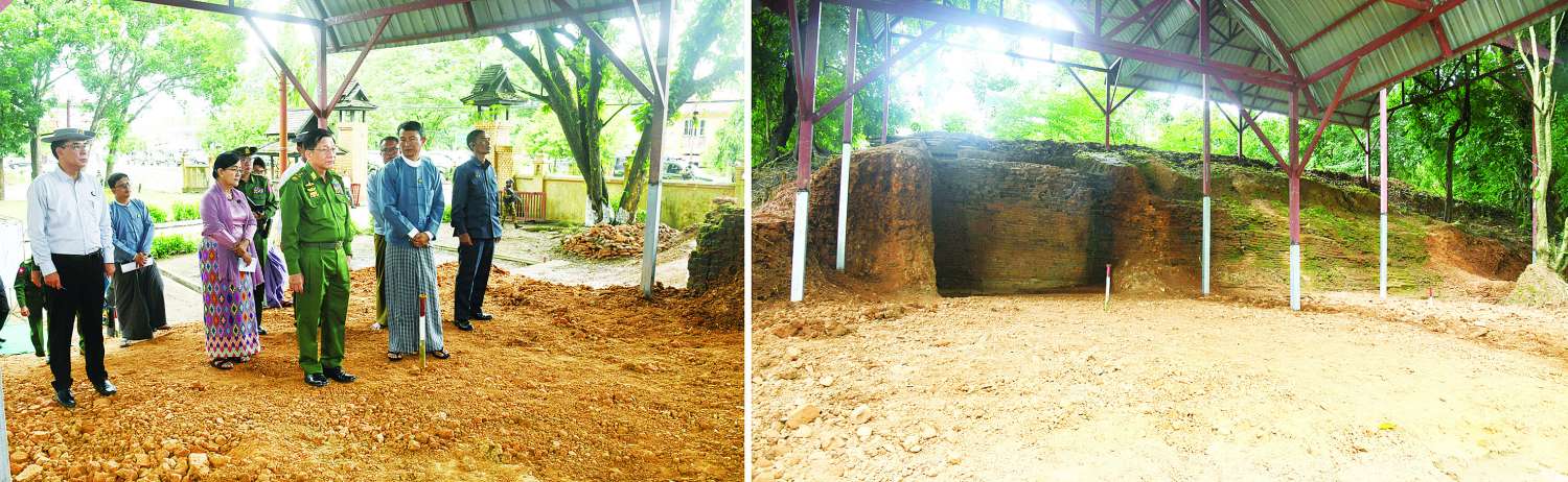 ဆက်လက်၍ နိုင်ငံတော်စီမံအုပ်ချုပ်ရေးကောင်စီဥက္ကဋ္ဌ နိုင်ငံတော်ဝန်ကြီးချုပ်နှင့် အဖွဲ့ဝင်များသည် တောင်ငူမြို့၊ ကေတုမတီ မြို့ဟောင်း၊ အရှေ့ဘက်ကျုံးနေရာရှိ ယိုးဒယားပေါက်နေရာ၊ အနောက်ဘက်မြို့ရိုးနေရာရှိ မြို့ရိုးတူးဖော်ထိန်းသိမ်းထားရှိမှုနှင့် ရေကျုံးနေရာ၊ မြို့ရိုးအရှေ့တောင်ထောင့်ရှိ မြို့လေးခံတပ်နေရာနှင့် မြို့ရိုးအတွင်း လှည့်လည်ကြည့်ရှုစစ်ဆေးခဲ့ပြီး တာဝန်ရှိသူများ၏ တင်ပြချက်များအပေါ် ရှေးဟောင်းမြို့ရိုးနှင့် ကျုံးတူးဖော်သုတေသနပြုလုပ်ငန်းများကို အောင်မြင်အောင် အကောင်အထည်ဖော် ဆောင်ရွက်ရမည်ဖြစ်ကြောင်း၊ ထိုသို့ဆောင်ရွက်ရာတွင် မြို့ရိုးအောက်ခြေ ဖောင်ဒေးရှင်းအုတ်ရိုးများကိုဖော်ထုတ်၍ အုတ်ရိုးအတိုင်းလိုက်ကာ မြို့ရိုးကိုဖော်ထုတ်ရမည်ဖြစ်ကြောင်း၊ မြို့ဟောင်းအဝင် တံတားပုံစံများကိုလည်း ပြန်လည်ဆန်းစစ် ဖော်ထုတ်လေ့လာသွားရန်လိုပြီး တည်ဆောက်၍ရနိုင်သည့် နေရာများတွင် ဦးစွာတည်ဆောက်သွား ရန်လိုကြောင်း၊ ဘုတ်တလုတ်ကန်ကိုလည်း ပြန်လည်ဆောင်ရွက်ရ မည်ဖြစ်ကြောင်း၊ မြို့ရိုးဖော်ထုတ် ရေးလုပ်ငန်းကို အဓိကဦးစားပေး ဆောင်ရွက်သွားရန်လိုကြောင်းနှင့် အခြားလိုအပ်သည်များကို မှာကြားသည်။