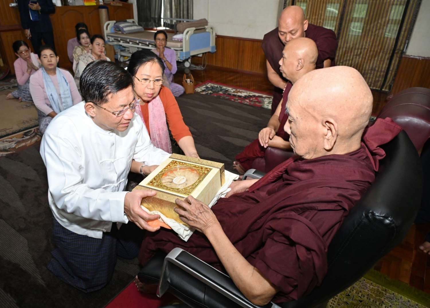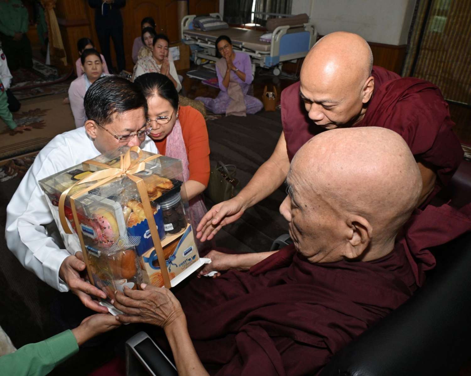 ထို့နောက် နိုင်ငံတော်စီမံအုပ်ချုပ်ရေးကောင်စီဥက္ကဋ္ဌ နိုင်ငံတော်ဝန်ကြီးချုပ်နှင့် ဇနီးတို့က ဆရာတော်ကြီးထံ အားဖြည့်ငှက်သိုက်နှင့် အာဟာရဖြည့်စားသောက်ဖွယ်ရာများနှင့် နဝကမ္မအလှူတော်ငွေများကို ဆက်ကပ်လှူဒါန်းခဲ့ကြောင်း သတင်းရရှိသည်။