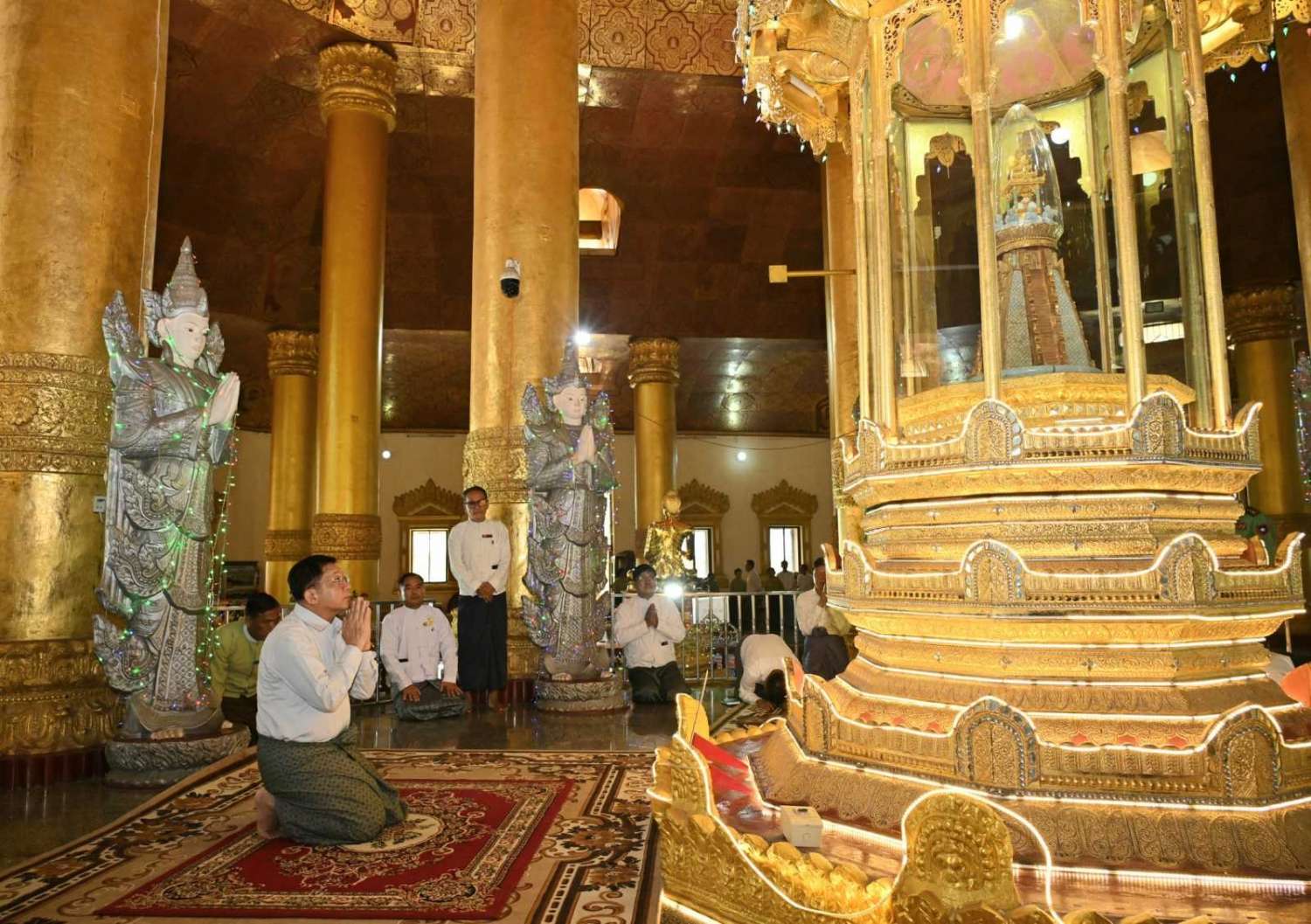 နိုင်ငံတော်စီမံအုပ်ချုပ်ရေးကောင်စီဥက္ကဋ္ဌ နိုင်ငံတော်ဝန်ကြီးချုပ် ဗိုလ်ချုပ်မှူးကြီး မင်းအောင်လှိုင်သည် ဇနီး ဒေါ်ကြူကြူလှ၊ ခရီးစဉ်တွင် လိုက်ပါလာသည့် အဖွဲ့ဝင်များနှင့် တာဝန်ရှိသူများလိုက်ပါ၍ ယနေ့နံနက်ပိုင်းတွင် မန္တလေးတိုင်းဒေသကြီး၊ မန္တလေးခရိုင်၊ အမရပူရမြို့နယ်၊ ရှားတောလေးကျေးရွာအနီးရှိ မဟာဓမ္မရံသီကုန်းတော်မြတ်၌ တည်ထားကိုးကွယ်သည့် စွယ်တော်မြတ်စေတီတော်(မန္တလေး)အား သွားရောက်ဖူးမြော်ကြည်ညိုသည်။