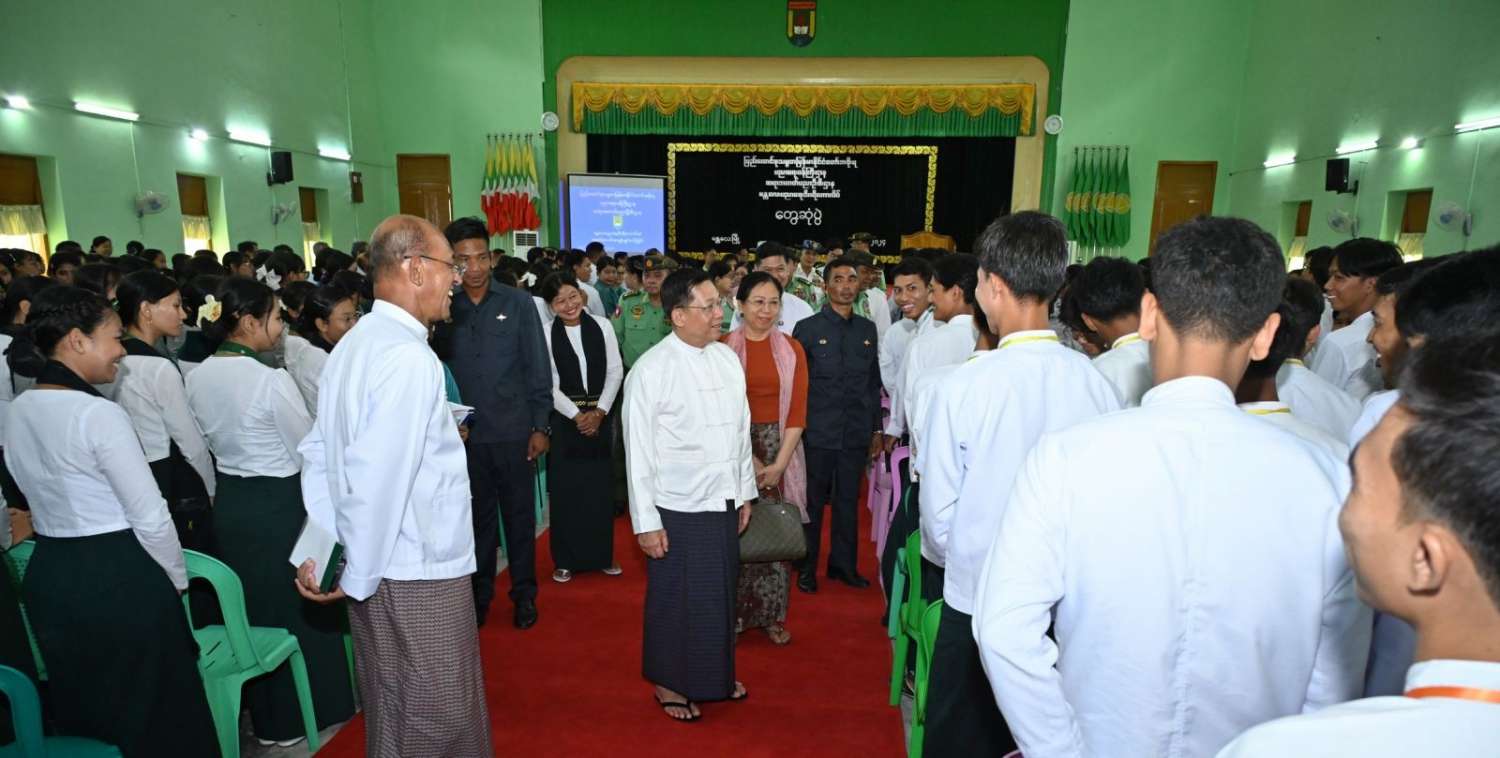 ယင်းနောက် နိုင်ငံတော်စီမံအုပ်ချုပ်ရေးကောင်စီဥက္ကဋ္ဌ နိုင်ငံတော်ဝန်ကြီးချုပ်သည် တက်ရောက်လာကြသည့် နည်းပြ ဆရာ၊ ဆရာမများ၊ ကျောင်းသား၊ ကျောင်းသူများအား ရင်းရင်းနှီးနှီးနှုတ်ဆက်ခဲ့ကြောင်း သတင်းရရှိသည်။