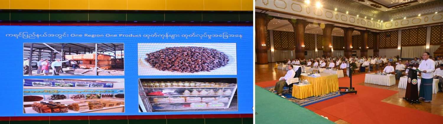 ဦးစွာ တိုင်းဒေသကြီးနှင့်ပြည်နယ်ဝန်ကြီးချုပ်များက တိုင်းဒေသကြီးနှင့် ပြည်နယ်အလိုက် ဒေသဆိုင်ရာအချက်အလက်များ၊ စိုက်ပျိုးရေးနှင့် မွေးမြူရေးလုပ်ငန်းများ အကောင်အထည်ဖော်ဆောင်ရွက်လျက်ရှိမှုနှင့် ထုတ်ကုန်ပစ္စည်းများထုတ်လုပ်နိုင်မှု၊ အသေးစား၊ အငယ်စားနှင့် အလတ်စားစီးပွားရေး(MSME) လုပ်ငန်းများ ဖွံ့ဖြိုးတိုးတက်ရေးဆောင်ရွက်လျက်ရှိမှု၊ စက်မှုဇုန်များအလိုက် ကုန်ထုတ်လုပ်ငန်းများဆောင်ရွက်လျက်ရှိမှု၊ ကျန်းမာရေး၊ ပညာရေးနှင့် ခရီးသွားလုပ်ငန်းများဖွံ့ဖြိုးတိုးတက်ရေး ဆောင်ရွက်လျက်ရှိမှု၊ လူဦးရေနှင့် အိမ်အကြောင်းအရာသန်းခေါင်စာရင်းကောက်ယူမှု လုပ်ငန်းအောင်မြင်စေရေးဆောင်ရွက်လျက်ရှိမှုနှင့် ဒေသအလိုက် တည်ငြိမ်အေးချမ်းရေးနှင့် ဖွံ့ဖြိုးတိုးတက်ရေးလုပ်ငန်းများ ဆက်လက်ဆောင်ရွက်သွားမည့် အခြေအနေများအား အသီးသီးရှင်းလင်းတင်ပြကြသည်။
