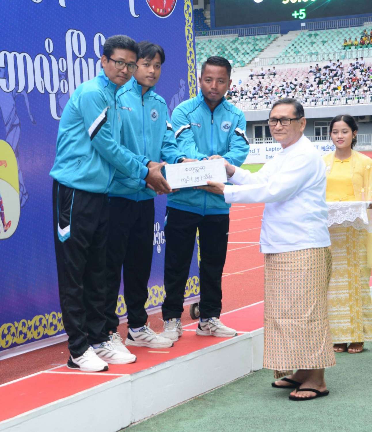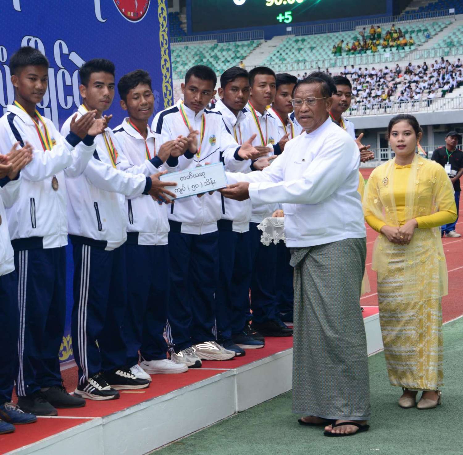 ယင်းနောက် နိုင်ငံတော်စီမံအုပ်ချုပ်ရေးကောင်စီဥက္ကဋ္ဌ နိုင်ငံတော်ဝန်ကြီးချုပ် ဗိုလ်ချုပ်မှူးကြီး မင်းအောင်လှိုင်က ပထမဆုရရှိသည့် နယ်စပ်ရေးရာဝန်ကြီးဌာန ကိုယ်စားပြုအသင်းအား ဂုဏ်ပြုဆုငွေများနှင့် တံခွန်စိုက်ဆုဖလားကို ပေးအပ်ချီးမြှင့်သည်။