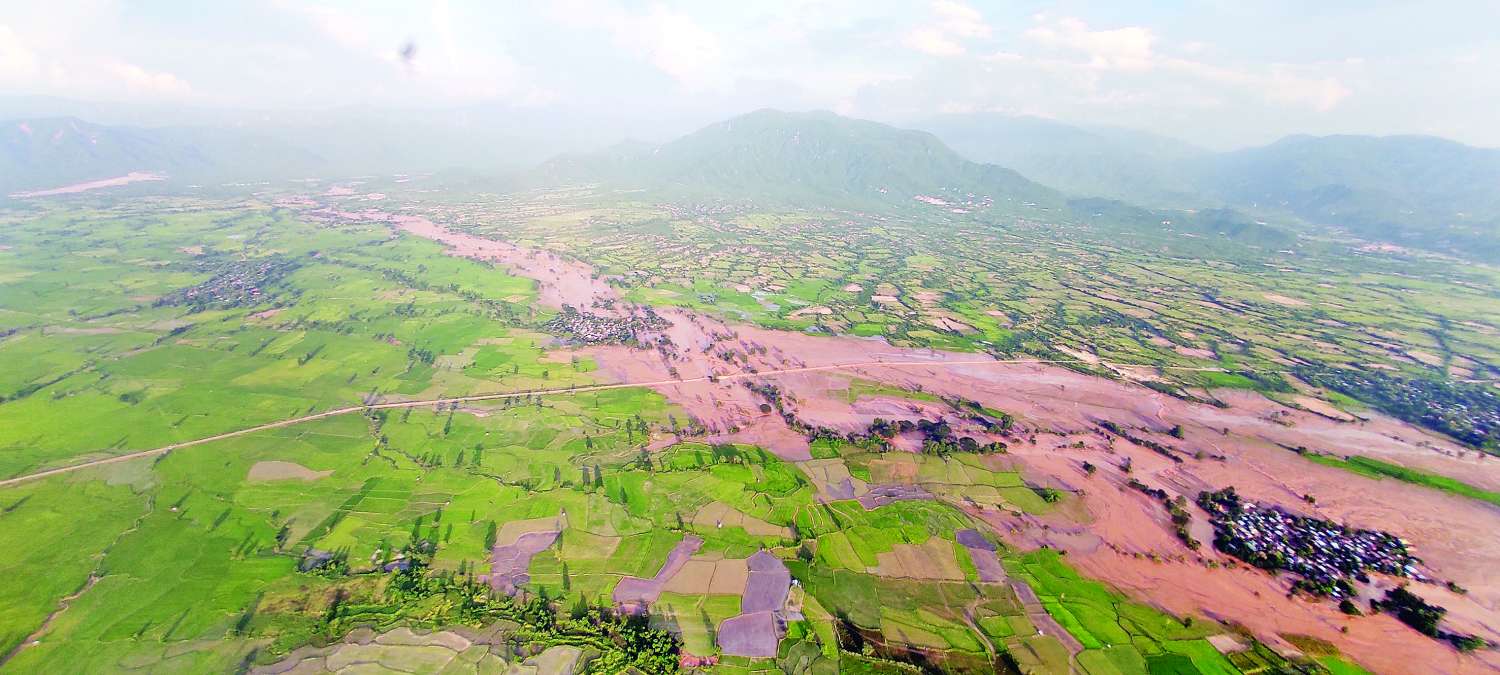 ယင်းနောက် တောင်တရုတ်ပင်လယ်ပြင်တွင် ဖြစ်ပေါ်ခဲ့သော တိုင်ဖွန်းမုန်တိုင်း ရာဂီ၏အရှိန်နှင့် ဘင်္ဂလားပင်လယ်အော် အနောက်အလယ်ပိုင်းနှင့် အနောက်မြောက်ပိုင်းတို့တွင် ဖြစ်ပေါ်နေသော မုန်တိုင်းငယ်၏အရှိန်ကြောင့် စက်တင်ဘာ ၁၀ ရက်မှစတင်၍ နေရာအနှံ့အပြား မိုးအဆက်မပြတ်ရွာသွန်းမှုများဖြစ်ပွားခဲ့ပြီး ချောင်းရေနှင့်မြစ်ရေများ အဆက်မပြတ်မြင့်တက်လာမှုနှင့်အတူ နေပြည်တော်ကောင်စီနယ်မြေအတွင်းရှိ မြို့နယ်အချို့တို့တွင် ရေကြီးရေလျှံမှုများဖြစ်ပေါ်ခဲ့မှု၏ ရေစီးဆင်းရာအစဖြစ်သည့် ရှမ်းကုန်းပြင်မြင့်နှင့် ဆက်စပ်တောင်ကုန်း တောင်တန်းများပေါ်မှ ရေများစီးဆင်းတိုက်စားခဲ့မှုကြောင့် တောင်ပြို၊ မြေပြိုမှုများဖြစ်ပေါ်နေမှု၊ အဆိုပါ တောင်ကုန်းတောင်တန်းများပေါ်မှ ဖြတ်သန်းစီးဆင်းလာသည့် တောင်ကျချောင်းရေများသည် မုန်ချောင်း၊ နဝင်းချောင်း၊ ကင်းသာချောင်းတို့နှင့် ၎င်းချောင်းများအားလုံးစုစည်း၍ စီးဝင်ရာဆင်သေချောင်း တစ်လျှောက်တို့၌ တောင်ကျချောင်းရေအရှိန်အဟုန်ဖြင့် စီးဆင်းခဲ့မှုကြောင့် ရေတိုက်စားရာလမ်းကြောင်း ကြီးများဖြစ်ပေါ်နေမှုနှင့် ရေပြန်လည်ကျဆင်းသွားပြီးနောက် သဲနုန်းများ၊ အပျက်အစီးများဖြစ်ပေါ်ကျန်ရှိနေမှု၊ စိုက်ဧကအများအပြားပျက်စီးခဲ့မှုနှင့် ရေစီးဆင်းရာလမ်းကြောင်းနှင့်နီးစပ်သည့် အချို့သောကျေးရွာများ ရေဖုံးလွှမ်းခဲ့မှုဖြစ်ပေါ်ခဲ့ပြီး ထိခိုက်ပျက်စီးခဲ့ရမှုအခြေအနေများကို ရဟတ်ယာဉ်ပေါ်မှ အသေးစိတ်ကြည့်ရှုစစ်ဆေးခဲ့ပြီး ပြန်လည်ထူထောင်ရေးလုပ်ငန်းများနှင့် သဘာဝဘေးအန္တရာယ် ကြိုတင်ကာကွယ်ရေးလုပ်ငန်းများ ဆက်လက်ဆောင်ရွက်ရမည့် အခြေအနေများနှင့်ပတ်သက်၍ တာဝန်ရှိသူများကိုမှာကြားခဲ့ကြောင်း သတင်းရရှိသည်။