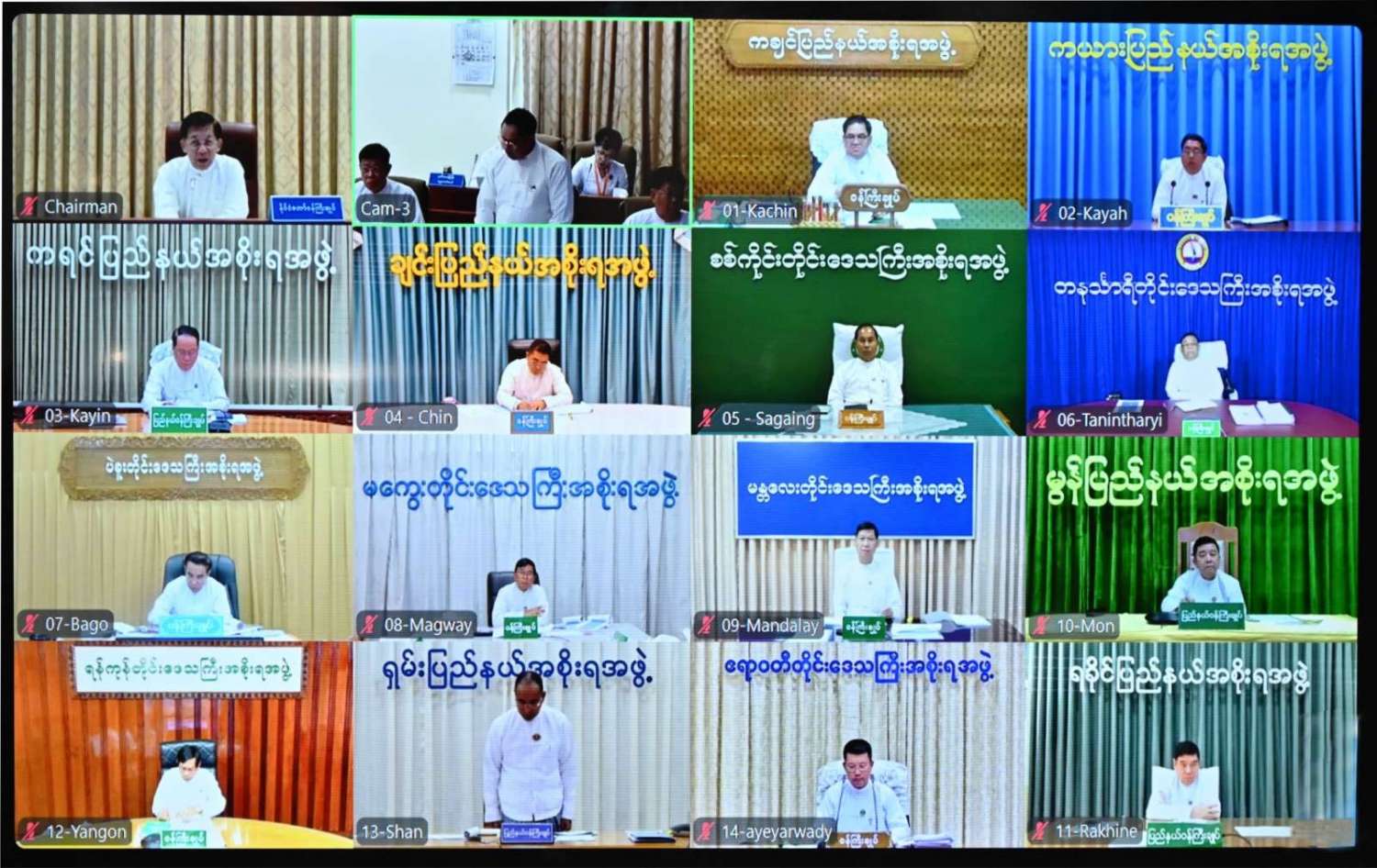 သဘာဝဘေးအန္တရာယ်စီမံခန့်ခွဲမှုဆိုင်ရာအစည်းအဝေးကို ယနေ့မွန်းလွဲပိုင်းတွင် နိုင်ငံတော်စီမံအုပ်ချုပ်ရေးကောင်စီဥက္ကဋ္ဌရုံး၊ အစည်းအဝေးခန်းမ၌ ကျင်းပပြုလုပ်ရာ နိုင်ငံတော်စီမံအုပ်ချုပ်ရေးကောင်စီဥက္ကဋ္ဌ နိုင်ငံတော်ဝန်ကြီးချုပ် ဗိုလ်ချုပ်မှူးကြီး မင်းအောင်လှိုင် တက်ရောက်ဆွေးနွေး၍ လိုအပ်သည်များ မှာကြားသည်။