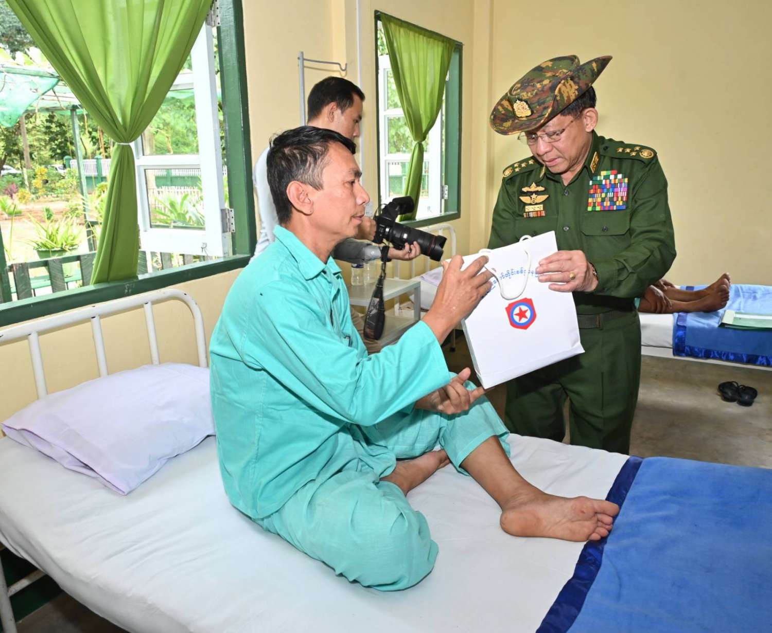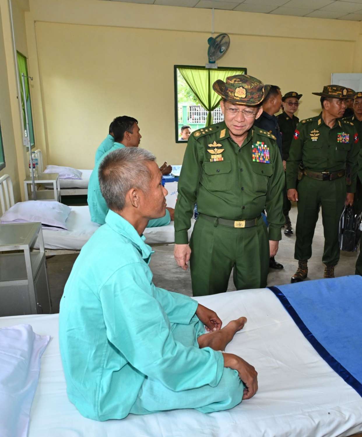 ယင်းနောက် နိုင်ငံတော်စီမံအုပ်ချုပ်ရေးကောင်စီဥက္ကဋ္ဌ တပ်မတော်ကာကွယ်ရေးဦးစီးချုပ်သည် မိုးသည်းထန်စွာရွာသွန်းမှုကြောင့် ရုတ်တရက် ရေကြီးရေလျှံမှုဖြစ်ပေါ်ခဲ့စဉ် ထိခိုက်ဒဏ်ရာရရှိခဲ့ပြီး နယ်မြေခံတပ်ဌာနချုပ်ဆေးခန်း၌ ဆေးကုသမှုခံယူလျက်ရှိသည့် စစ်သည်များအား သွားရောက်ကြည့်ရှု၍ ရင်းရင်းနှီးနှီး အားပေးစကားပြောကြားကာ စားသောက်ဖွယ်ရာပစ္စည်းများပေးအပ်သည်။