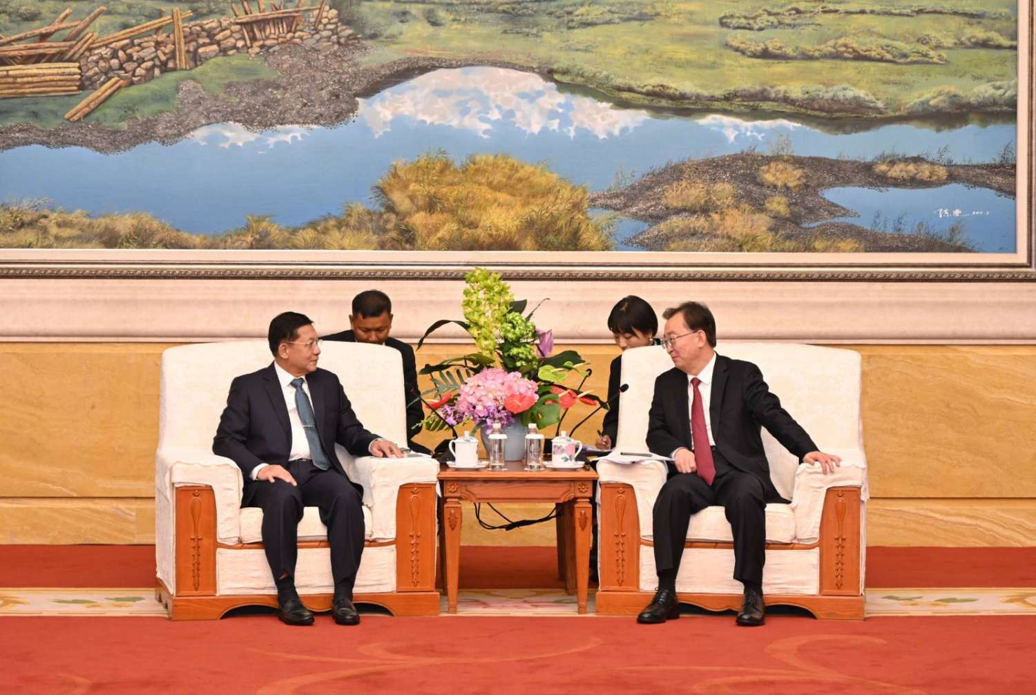 နိုင်ငံတော်စီမံအုပ်ချုပ်ရေးကောင်စီဥက္ကဋ္ဌ နိုင်ငံတော်ဝန်ကြီးချုပ် ဗိုလ်ချုပ်မှူးကြီး မင်းအောင်လှိုင် တရုတ်ကွန်မြူနစ်ပါတီ၊ ဗဟိုကော်မတီအဖွဲ့ဝင်နှင့် ယူနန်ပြည်နယ် ပါတီကော်မတီ အတွင်းရေးမှူး H.E. Mr. Wang Ning နှင့် တွေ့ဆုံဆွေးနွေး