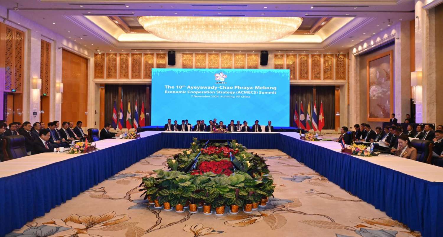(၁၀) ကြိမ်မြောက် ဧရာဝတီ- ကျောက်ဖရား- မဲခေါင် စီးပွားရေးပူးပေါင်း ဆောင်ရွက်မှု မဟာဗျူဟာ (အက်မက်စ်) ထိပ်သီးအစည်းအဝေး (10th Ayeyawady- Chao Phraya-Mekong Economic Cooperation Strategy (ACMECS)) ကို မဲခေါင်နိုင်ငံများ၏ နယ်စပ်ဒေသများတွင် ယှဉ်ပြိုင်နိုင်စွမ်းကိုတိုးမြှင့်ပြီး ဖွံ့ဖြိုးတိုးတက်မှုများ ပိုမိုဖြစ်ထွန်းလာစေရန်၊ စိုက်ပျိုးရေးနှင့် ကုန်ထုတ်လုပ်မှုလုပ်ငန်းများကို အခွင့်အလမ်းပိုမိုကောင်းမွန်သည့် ဒေသများသို့ပြောင်းရွှေ့ရာ၌ အထောက်အကူပြုရန်၊ အလုပ်အကိုင် အခွင့်အလမ်းများ ဖန်တီးပေးပြီး အဖွဲ့ဝင်နိုင်ငံများအကြား ဝင်ငွေကွာဟမှုကို လျှော့ချရန်နှင့် အားလုံးအတွက် ငြိမ်းချမ်းရေး၊ တည်ငြိမ်ရေး၊ ညီတူညီမျှသာယာဝပြောရေးတို့ကို စဉ်ဆက်မပြတ် ဖွံ့ဖြိုးတိုးတက်စေသည့်နည်းလမ်းဖြင့် တိုးမြှင့်ဆောင်ရွက်ရန်ရည်ရွယ်၍ ကျင်းပခြင်းဖြစ်ကြောင်း သတင်းရရှိသည်။