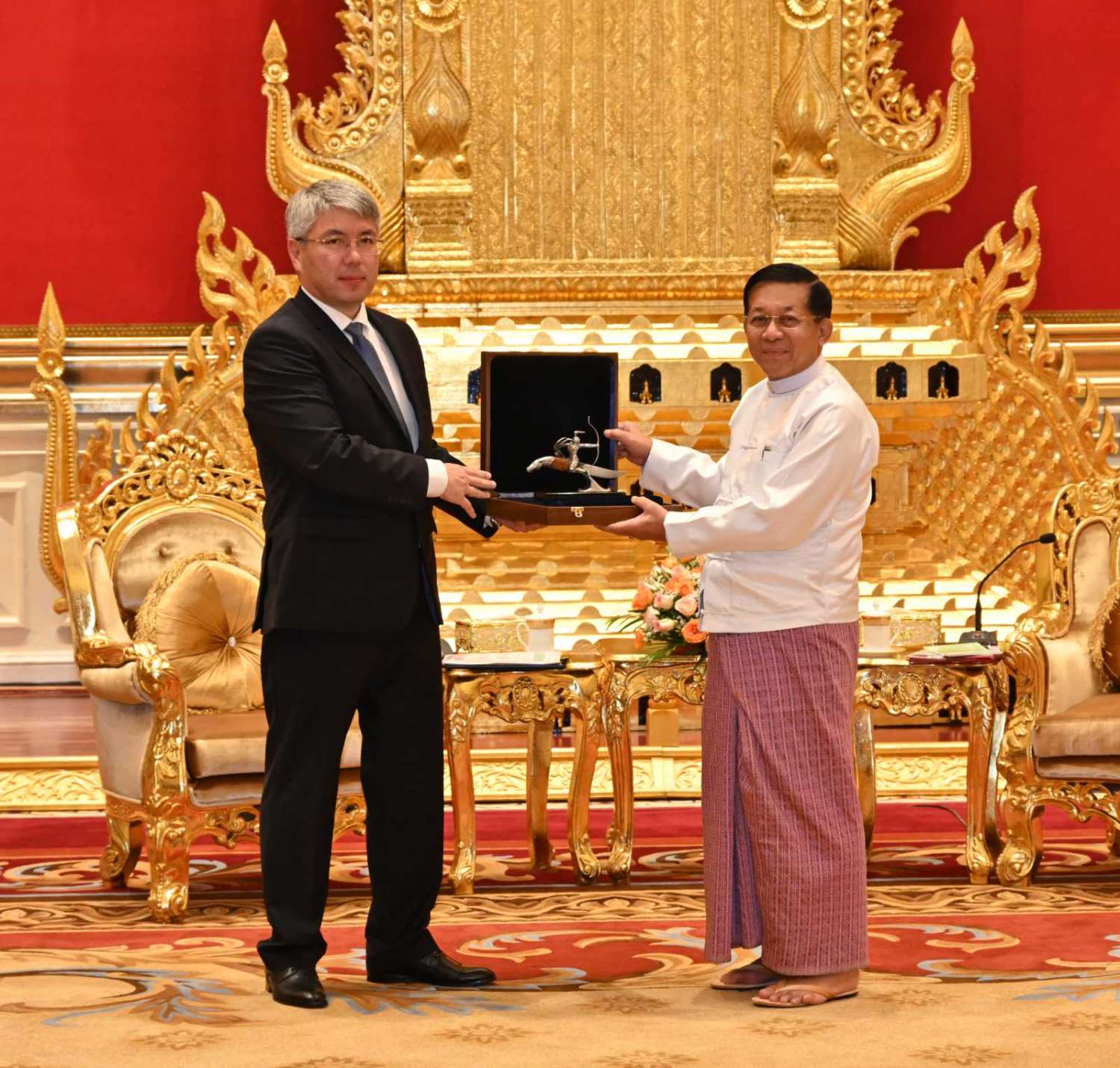 နိုင်ငံတော်စီမံအုပ်ချုပ်ရေးကောင်စီဥက္ကဋ္ဌ နိုင်ငံတော်ဝန်ကြီးချုပ် ဗိုလ်ချုပ်မှူးကြီး မင်းအောင်လှိုင်သည် ရုရှားဖက်ဒရေးရှင်းနိုင်ငံ၊ ဘူရားတီးရားပြည်နယ်အကြီးအကဲ၊ ဘူရားတီးရားပြည်နယ်အစိုးရဥက္ကဋ္ဌ H.E. Mr. Tsydenov Alekesei Sambuevich ဦးဆောင်သော ကိုယ်စားလှယ်အဖွဲ့အား ယနေ့နံနက်ပိုင်းတွင် နေပြည်တော်ရှိ နိုင်ငံတော်စီမံအုပ်ချုပ်ရေးကောင်စီ ဥက္ကဋ္ဌရုံး သံတမန်ဆောင်ဧည့်ခန်းမ၌ လက်ခံ တွေ့ဆုံသည်။