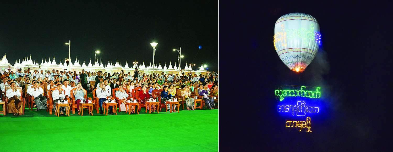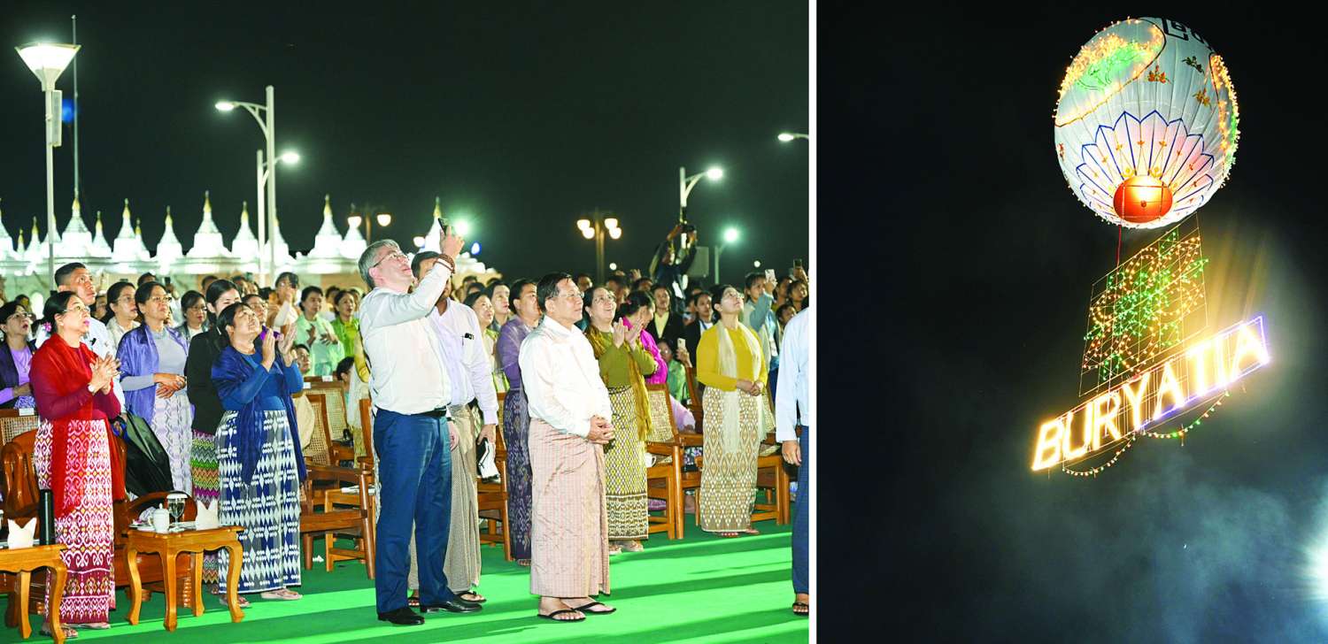 ထို့နောက် နိုင်ငံတော်စီမံအုပ်ချုပ်ရေးကောင်စီဥက္ကဋ္ဌ နိုင်ငံတော်ဝန်ကြီးချုပ်နှင့် ရုရှားဖက်ဒရေးရှင်းနိုင်ငံ၊ ဘူရားတီးရားပြည်နယ်အကြီးအကဲ၊ ဘူရားတီးရားပြည်နယ်အစိုးရဥက္ကဋ္ဌနှင့် ချစ်ကြည်ရေးကိုယ်စားလှယ်အဖွဲ့တို့က စိန်နားပန်မီးပုံးပျံလွှတ်တင်မှုနှင့် ညမီးကျည် (ညမီးကြီး) မီးပုံးပျံများ လွှတ်တင်ပူဇော်ယှဉ်ပြိုင်နေမှုများကို ကြည့်ရှုအားပေးကြသည်။