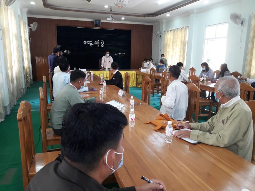 ရှမ်းပြည်နယ်၀န်ကြီးချုပ်‌ ဒေါက်တာလင်းထွဋ်နှင့် သိန္နီမြို့ ကိုဗစ်-၁၉ ရောဂါ ထိန်းချုပ်ရေးနှင့်‌အ‌ရေး ပေါ်တုံ့ပြန်‌‌ရေးကော်မတီ၀င်များ တွေ့ဆုံပွဲကျင်းပ