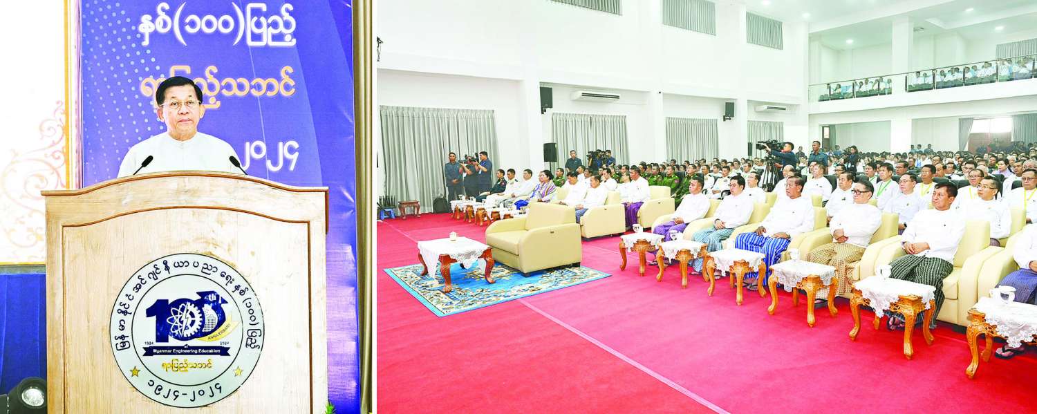 မြန်မာနိုင်ငံအင်ဂျင်နီယာပညာရေး နှစ် (၁ဝဝ) ပြည့် ရာပြည့်သဘင်နှင့် Naypyitaw State Polytechnic University ဖွင့်ပွဲအခမ်းအနား ကျင်းပ နိုင်ငံတော်စီမံအုပ်ချုပ်ရေးကောင်စီဥက္ကဋ္ဌ နိုင်ငံတော်ဝန်ကြီးချုပ် ဗိုလ်ချုပ်မှူးကြီး မင်းအောင်လှိုင် တက်ရောက်ချီးမြှင့်