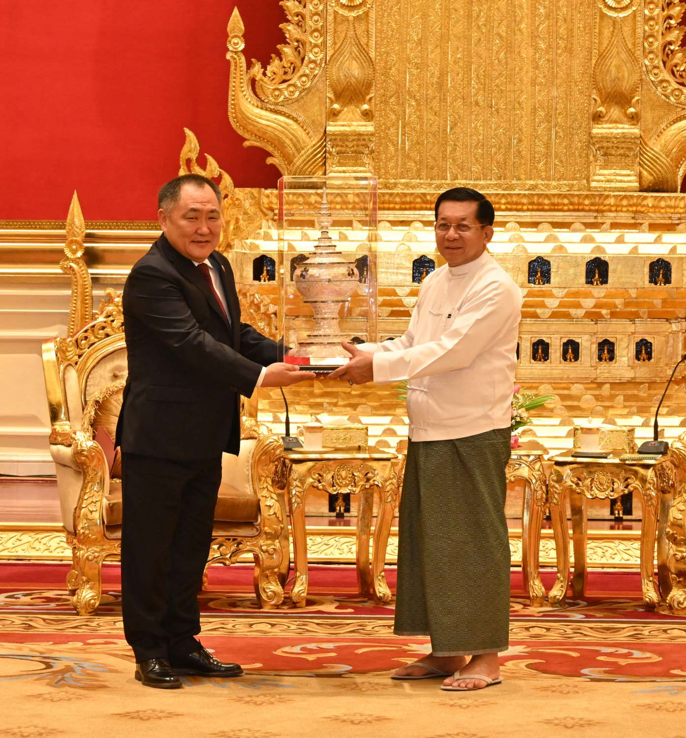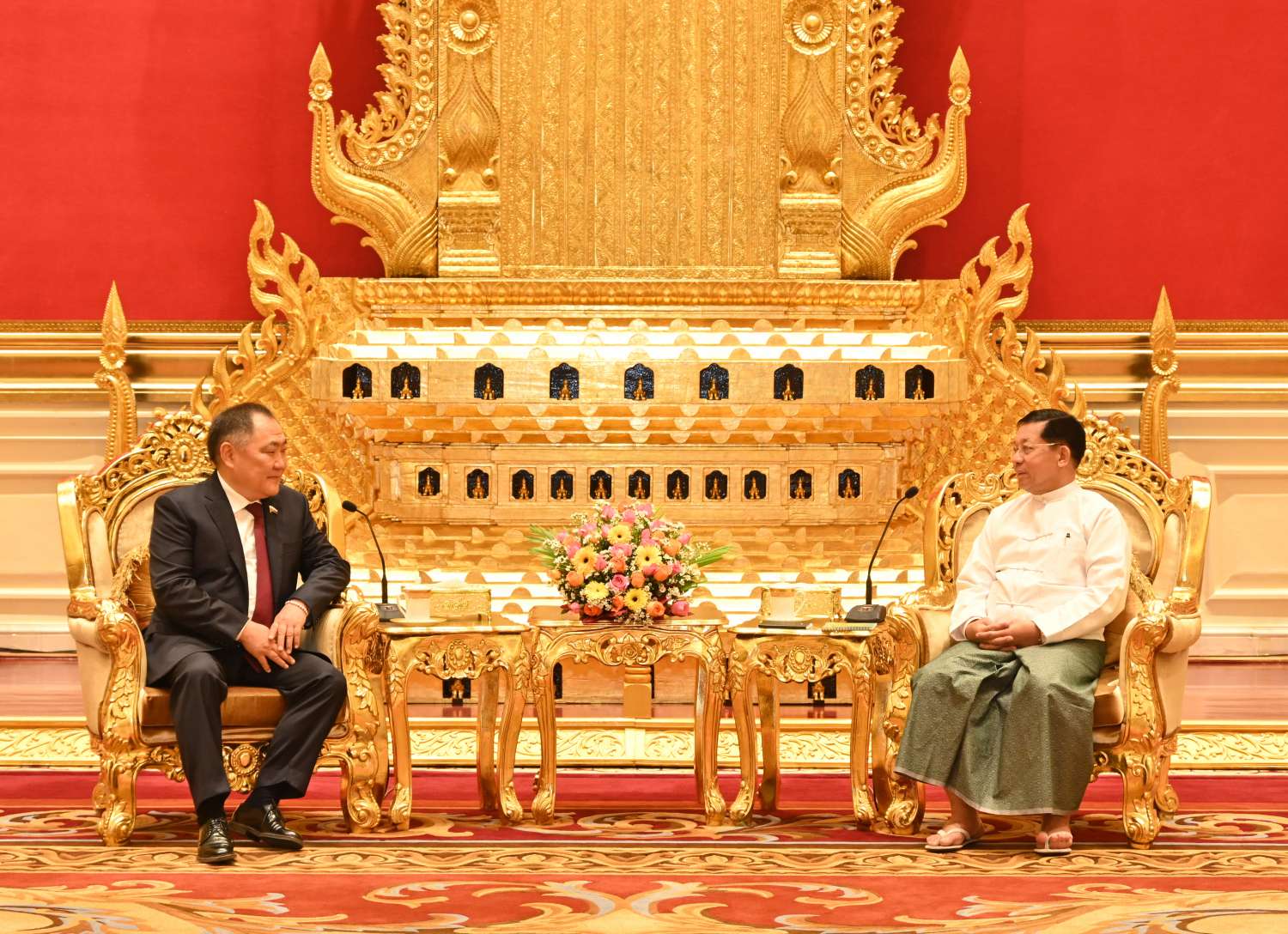 နိုင်ငံတော်စီမံအုပ်ချုပ်ရေးကောင်စီဥက္ကဋ္ဌ နိုင်ငံတော်ဝန်ကြီးချုပ် ဗိုလ်ချုပ်မှူးကြီး မင်းအောင်လှိုင်ထံသို့ ရုရှားဖက်ဒရေးရှင်းနိုင်ငံ၊ ဒူးမားလွှတ်တော် ဒုတိယဥက္ကဋ္ဌ H. E. Mr. Sholban Kara-Ool ဦးဆောင်သည့်ကိုယ်စားလှယ်အဖွဲ့က ယနေ့နံနက်ပိုင်းတွင် နေပြည်တော်ရှိ နိုင်ငံတော်စီမံအုပ်ချုပ်ရေးကောင်စီဥက္ကဋ္ဌရုံး၊ သံတမန်ဆောင်ဧည့်ခန်းမ၌ လာရောက်ဂါရဝပြုတွေ့ဆုံသည်။