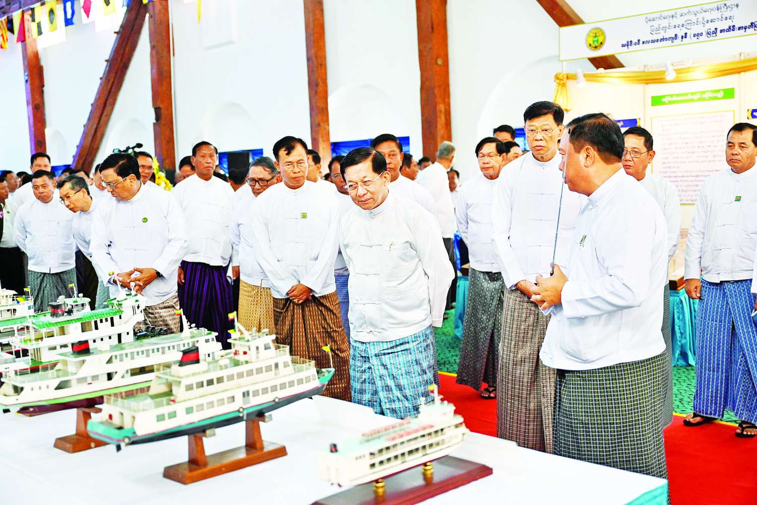 ယင်းနောက် နိုင်ငံတော်စီမံအုပ်ချုပ်ရေးကောင်စီဥက္ကဋ္ဌ နိုင်ငံတော်ဝန်ကြီးချုပ်သည် အခမ်းအနားတက်ရောက်လာကြသူနှင့်အတူ စုပေါင်းမှတ်တမ်းတင်ဓာတ်ပုံရိုက်ကြပြီး ဒလသင်္ဘောကျင်းမှဝန်ထမ်းများအား ရင်းရင်းနှီးနှီးနှုတ်ဆက်ကာ သမိုင်းဝင် ရှေးဟောင်းဒီဇယ်စက်ပြင်အလုပ်ရုံအတွင်း ပြသထားသော ပြည်တွင်းရေကြောင်း ပို့ဆောင်ရေးနှင့် ဒလသင်္ဘောကျင်း၏ သမိုင်းမှတ်တမ်းများ၊ မှတ်တမ်းဓာတ်ပုံများနှင့် ရေယာဉ်ပုံစံငယ်များကို ပြကွက်တစ်ခုချင်းစီအလိုက် စိတ်ပါဝင်စားစွာဖြင့် လှည့်လည်ကြည့်ရှုကြသည်။