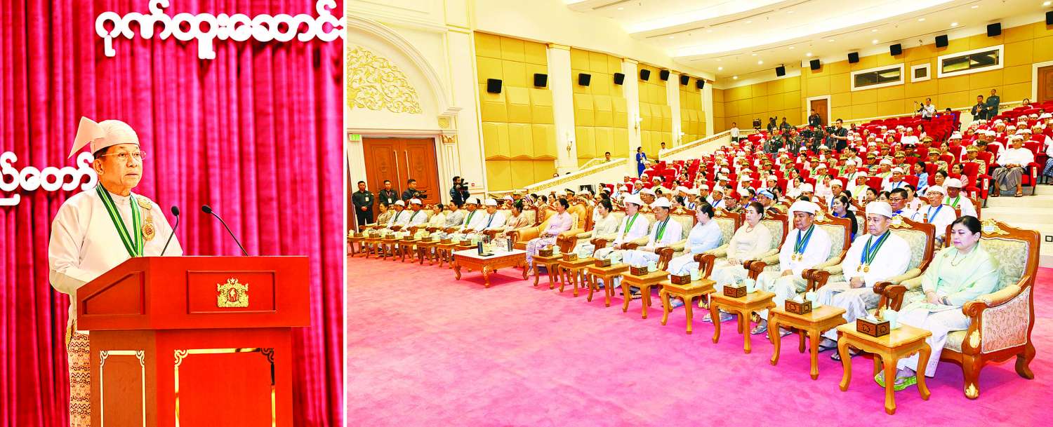 နိုင်ငံတော်အတွက် ထူးထူးချွန်ချွန် ဆောင်ရွက်ခဲ့ကြသူများ၊ စွန့်လွှတ်စွန့်စားမှု၊ အနစ်နာခံမှုတို့ဖြင့် တာဝန်ကျေခဲ့ကြသူများကို နိုင်ငံတော်အစိုးရအနေဖြင့် ကျေးဇူးတင်ရှိသည်ကို ထပ်လောင်းပြောကြားလိုကြောင်း၊ ယခုကဲ့သို့ ဂုဏ်ပြုချီးမြှင့်ပေးရခြင်းကို ဝမ်းသာဂုဏ်ယူပါကြောင်းနှင့် ဆက်လက်၍လည်း ဂုဏ်ပြုသင့်သူများကိုမှတ်တမ်းတင် ဂုဏ်ပြုချီးမြှင့်သွားမည်ဖြစ်ကြောင်းဖြင့် ပြောကြားသည်။