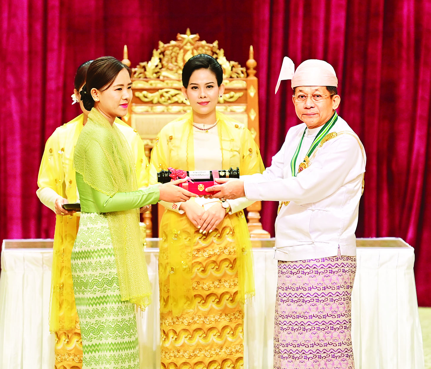 အခမ်းအနားသို့ နိုင်ငံတော်စီမံအုပ်ချုပ်ရေးကောင်စီဥက္ကဋ္ဌ နိုင်ငံတော်ဝန်ကြီးချုပ်၏ ဇနီးဒေါ်ကြူကြူလှ၊ နိုင်ငံတော်စီမံအုပ်ချုပ်ရေးကောင်စီဒုတိယဥက္ကဋ္ဌ ဒုတိယဝန်ကြီးချုပ် ဒုတိယဗိုလ်ချုပ်မှူးကြီး သီရိပျံချီမဟာသရေစည်သူ စိုးဝင်းနှင့် ဇနီး၊ ကောင်စီအတွင်းရေးမှူးနှင့် ဇနီး၊ တွဲဖက်အတွင်းရေးမှူးနှင့်ဇနီး၊ နိုင်ငံတော်စီမံအုပ်ချုပ်ရေးကောင်စီဝင်များနှင့်ဇနီးများ၊ ပြည်ထောင်စုအဆင့်ပုဂ္ဂိုလ်များ၊ ပြည်ထောင်စုဝန်ကြီးများနှင့်ဇနီးများ၊ ကာကွယ်ရေးဦးစီးချုပ်ရုံးမှ အဆင့်မြင့်တပ်မတော်အရာရှိကြီးများ၊ ဂုဏ်ထူးဆောင်ဘွဲ့ရရှိကြသည့် ပုဂ္ဂိုလ်များနှင့် မိသားစုဝင်များ တက်ရောက်ကြသည်။