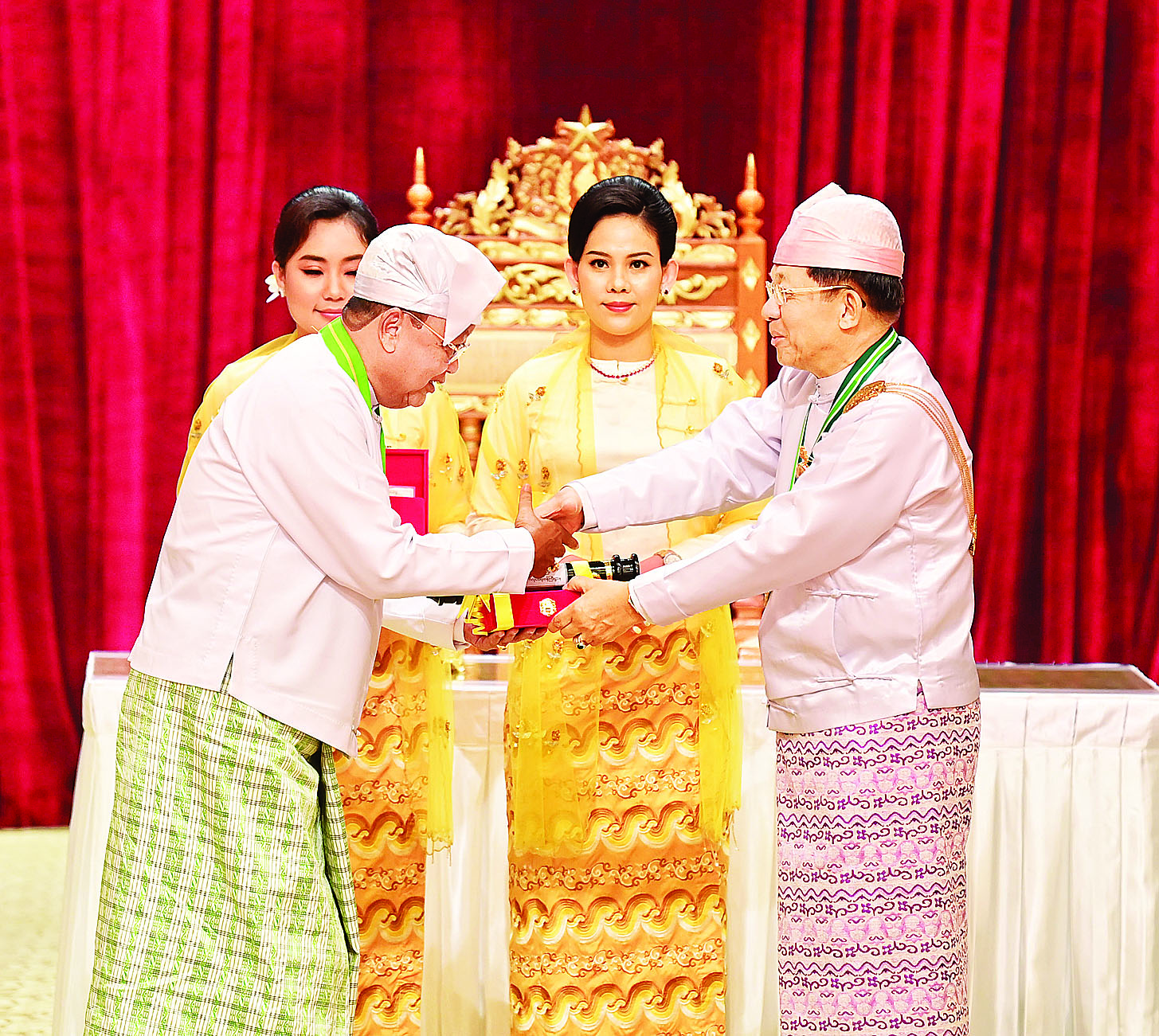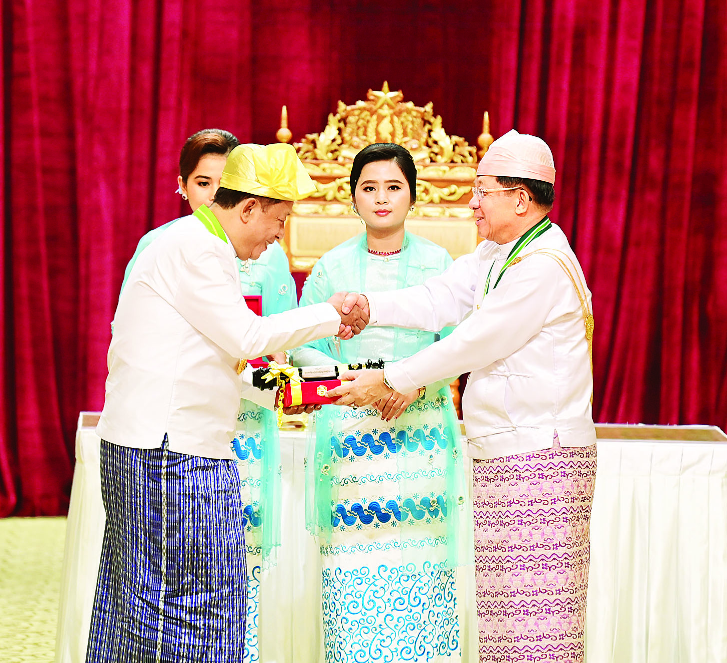 ဂုဏ်ထူးဆောင်ဘွဲ့၊ တံဆိပ်ချီးမြှင့်အပ်နှင်းရေးဆိုင်ရာ လုပ်ငန်းများကို ဂုဏ်ထူးဆောင်ဘွဲ့များ၊ ဂုဏ်ထူးဆောင်တံဆိပ်များဆိုင်ရာ ပြဋ္ဌာန်းချက်တွေနှင့်အညီ အဆင့်ဆင့် ထောက်ခံတင်ပြချက်များအပေါ်တွင် စနစ်တကျစိစစ်ရွေးချယ်ပြီး အမှန်တကယ်ဂုဏ်ပြုချီးမြှင့်ထိုက်သူများကိုသာ ထိုက်ထိုက်တန်တန် ချီးမြှင့်အပ်နှင်းခဲ့ခြင်းဖြစ်သဖြင့် ဘွဲ့ခံပုဂ္ဂိုလ်များနဲ့ မိသားစုဝင်များအတွက် အထူးဂုဏ်ယူဝမ်းမြောက်မိသည်ကို ပြောကြားလိုကြောင်း။