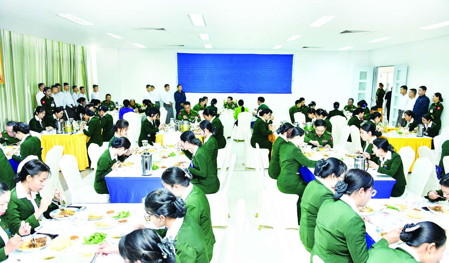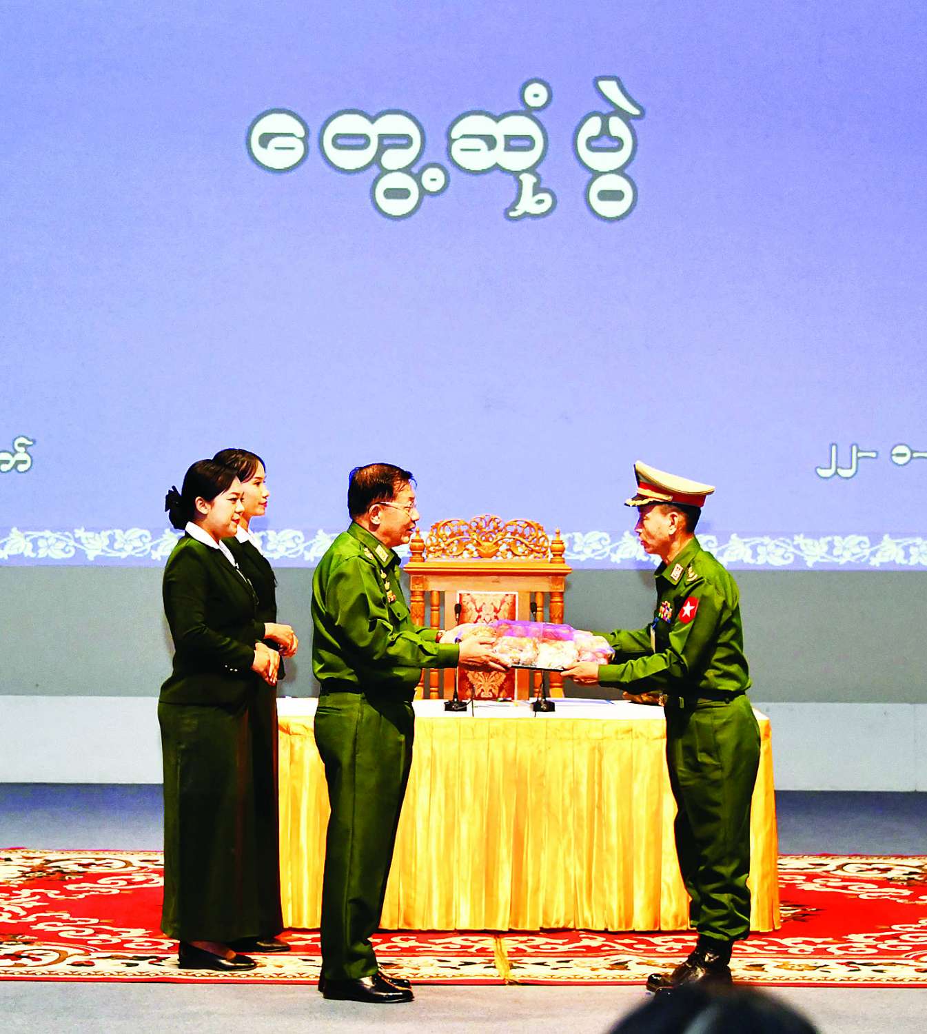 ထို့နောက် နိုင်ငံတော်စီမံအုပ်ချုပ်ရေးကောင်စီဥက္ကဋ္ဌ တပ်မတော်ကာကွယ်ရေးဦးစီးချုပ်က သင်တန်းကျောင်းမှ အရာရှိ၊ စစ်သည်၊ မိသားစုများနှင့် သင်တန်းသားများအတွက် စားသောက်ဖွယ်ရာပစ္စည်းများကိုပေးအပ်ရာ တပ်နယ်မှူးက လက်ခံရယူသည်။