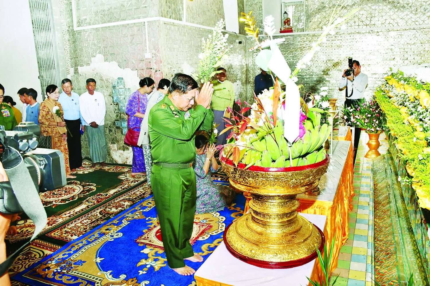 နိုင်ငံတော်စီမံအုပ်ချုပ်ရေးကောင်စီဥက္ကဋ္ဌ နိုင်ငံတော်ဝန်ကြီးချုပ် ဗိုလ်ချုပ်မှူးကြီး မင်းအောင်လှိုင်သည် ယနေ့မွန်းလွဲပိုင်းတွင် ဇနီး ဒေါ်ကြူကြူလှ၊ ကောင်စီတွဲဖက်အတွင်းရေးမှူး ဗိုလ်ချုပ်ကြီး ရဲဝင်းဦး၊ ကောင်စီအဖွဲ့ဝင်များ၊ ပြည်ထောင်စုဝန်ကြီးများနှင့် ဇနီးများ၊ ကာကွယ်ရေးဦးစီးချုပ်ရုံးမှ အဆင့်မြင့်တပ်မတော်အရာရှိကြီးများနှင့် ဇနီးများ၊ မန္တလေးတိုင်းဒေသကြီးဝန်ကြီးချုပ်၊ အလယ်ပိုင်းတိုင်းစစ်ဌာနချုပ် တိုင်းမှူးနှင့် တာဝန်ရှိသူများ လိုက်ပါ၍ မန္တလေးတိုင်းဒေသကြီး အင်းဝမြို့ဟောင်းရှိ လောကသရဖူဘုရားကြီးနှင့် မောင်အိုအုတ်လမ်း ထိန်းသိမ်းထားရှိမှုအခြေအနေများကို သွားရောက်ကြည့်ရှုစစ်ဆေးသည်။