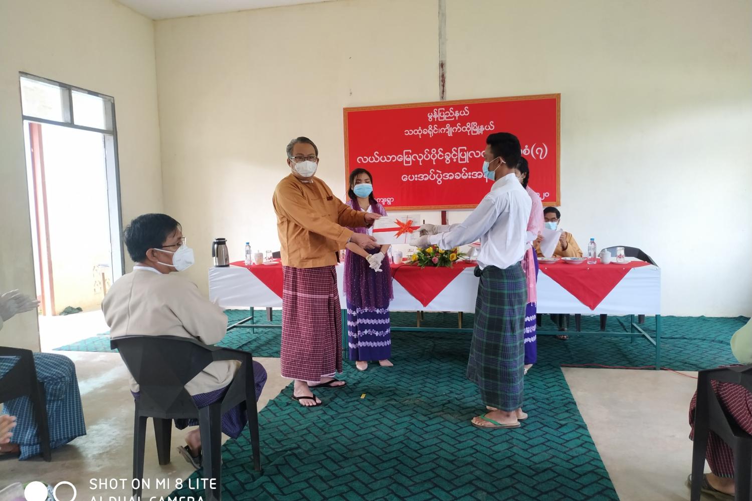 မွန်ပြည်နယ်၊ သထုံခရိုင်၊ ကျိုက်ထိုမြို့နယ် ဝင်းကံကျေးရွာအုပ်စုအတွင်းရှိ ဒေသခံတောင်သူများ အား လယ်ယာမြေလုပ်ပိုင်ခွင့်ပြု လက်မှတ်ပုံစံ(၇)ပေးအပ်ပွဲ အခမ်းအနားကို ယမန်နေ့ နံနက် ၉နာရီခွဲခန့်က ကျောက်ရေတွင်းကျေးရွာ အခြေခံပညာမူလတန်းကျောင်း၌ပြုလုပ်ခဲ့သည်။