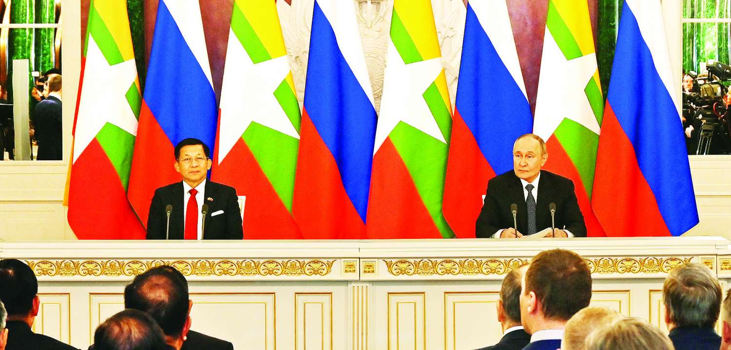 လေးစားအပ်ပါတဲ့ အဆွေတော် ရုရှားဖက်ဒရေးရှင်းသမ္မတနိုင်ငံ နိုင်ငံသမ္မတကြီး မစ္စတာဗလာဒီမာပူတင်နှင့် တက်ရောက်လာကြတဲ့ နှစ်ဖက်ကဧည့်သည်တော်များခင်ဗျာ။ ကျွန်တော်က သမ္မတကြီးမစ္စတာပူတင်ရဲ့ ဖိတ်ကြားချက်အရ ရုရှားနိုင်ငံကိုချစ်ကြည်ရေးခရီး လာရောက်ခြင်းဖြစ်ပါတယ်။ ရုရှားနိုင်ငံဟာ မြန်မာနိုင်ငံရဲ့အရေးပါပြီးယုံကြည်ရတဲ့ မိတ်ဆွေနိုင်ငံ တစ်ခုဖြစ်ပါတယ်။ ဒါကြောင့် အပြန်အလှန်ယုံကြည်မှု၊ နားလည်မှု၊ လေးစားမှုတွေနဲ့ အခြေခံတည်ဆောက်ထားတဲ့ နှစ်နိုင်ငံဆက်ဆံရေးကို ကျွန်တော်တို့အနေနဲ့ တန်ဖိုးထားပါကြောင်း အလေးအနက်ထားပြောကြားလိုပါတယ်။ ၁၉၄၈ ခုနှစ်က စတင်တည်ထောင်ခဲ့တဲ့ သံတမန်ဆက်ဆံရေးဟာ နှစ်ပေါင်း (၇၇) နှစ်ကျော် ကြာခဲ့ပြီဖြစ်ပါတယ်။ ချစ်ကြည်ရင်းနှီးမှုဟာလည်း ပိုမိုနက်ရှိုင်းလာပြီးတော့မှ ပူးပေါင်းဆောင်ရွက်မှုတွေဟာလည်း ပိုမိုအောင်မြင်တိုးတက်လာတာကိုလည်း ဝမ်းမြောက်ဖွယ်ရာတွေ့ရှိရပါတယ်။ ကျွန်တော်တို့ချစ်ကြည်ရေးခရီးစဉ်မှာ အဆွေတော်သမ္မတကြီး မစ္စတာပူတင်နဲ့ နှစ်နိုင်ငံရဲ့ နိုင်ငံတကာအခြေအနေအရပ်ရပ်ကို ကျယ်ပြန့်စွာဆွေးနွေးနိုင်ခဲ့ပါတယ်။ အလားတူ ရုရှားနိုင်ငံအစိုးရအဖွဲ့ဝန်ကြီးချုပ် H.E. Mr. Mikhail Vladimirovich Mishustim နဲ့ လွှတ်တော်ဥက္ကဋ္ဌနှစ်ဦးနဲ့လည်း တွေ့ဆုံပြီးတော့မှ နှစ်နိုင်ငံပူးပေါင်းဆောင်ရွက်ရေး၊ စီးပွားရေးအရ စီးပွားရေးဖွံ့ဖြိုးတိုးတက်မှု ပူးပေါင်းဆောင်ရွက်ရေးနဲ့ နှစ်နိုင်ငံဆက်ဆံရေး ပိုမိုမြှင့်တင်ရေးတို့အတွက် ဆွေးနွေးနိုင်ခဲ့ပါတယ်။ ယနေ့တွေ့ဆုံပွဲမှာလည်း ကျွန်တော်တို့နှစ်ဦးဟာ နှစ်ဖက်သဘောတူညီ ချက်များစွာကိုလည်း မြှင့်တင်ဆောင်ရွက်နိုင်ပါတယ်။ အထူးသဖြင့် သမ္မတကြီးအနေဖြင့်လည်း အသေးစိတ်အားဖြင့် ရှင်းပြပြီးဖြစ်ပါတယ်။ နှစ်ဖက်ယုံကြည်စိတ်ချစွာ ဆွေးနွေးမှုများကြောင့် သဘောတူညီချက် (၁၀) ခုကိုလည်း လက်မှတ်ရေးထိုးနိုင်ခဲ့ပါတယ်။ ကျွန်တော်တို့ခရီးစဉ်အတွင်းမှာ စိန့်ပီတာစဘတ်မြို့နဲ့ နိုဗာစီဘစ်ရ်စ်ခ်မြို့တို့မှာ မြန်မာကောင်စစ်ဝန်ရုံးများကိုလည်း တရားဝင်ဖွင့်လှစ်သွားမှာဖြစ်တာကြောင့် နှစ်ဖက်အကြား ဆွေးနွေးဖလှယ်မှုများနဲ့ ပူးပေါင်းဆောင်ရွက်မှုများကို ဆက်လက်ပြီး တိုးချဲ့ဆောင်ရွက်သွားနိုင်မယ်လို့ ကျွန်တော်တို့အနေနဲ့ ယုံကြည်ပါတယ်။ ယခုခရီးစဉ်ကနေတစ်ဆင့် ကျွန်တော်တို့နှစ်နိုင်ငံအကြားမှာ ချစ်ကြည်ရင်းနှီးမှုဟာ ပိုမိုနက်ရှိုင်းစေပြီးတော့မှ နှစ်ဖက်အကြားမှာ ကုန်သွယ်ရေး၊ စီးပွားရေး၊ ကာကွယ်ရေး၊ သိပ္ပံနှင့်နည်းပညာ၊ လျှပ်စစ်စွမ်းအား၊ စက်မှုနဲ့ စွမ်းအင်ကဏ္ဍတို့အပါအဝင် အကျိုးတူကဏ္ဍစုံ ပူးပေါင်းဆောင်ရွက်မှုတွေလည်း မကြာခင်ကာလအတွင်းမှာ ယခုထက်ပိုမိုတ